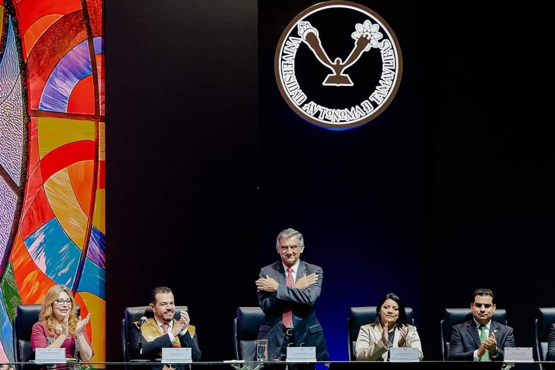 El gobernador Américo Villarreal acompañó al rector de la Universidad Autónoma de Tamaulipas Guillermo Mendoza, a su Primer Informe Rectoral