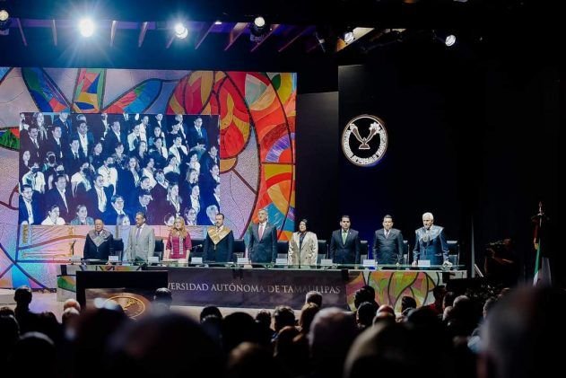 El gobernador Américo Villarreal acompañó al rector de la Universidad Autónoma de Tamaulipas Guillermo Mendoza, a su Primer Informe Rectoral, junto a las y los universitarios presentes. “Yo sé que esta universidad, esta gran universidad, va a formar cada vez más hombres y mujeres de bien” dijo el Gobernador.