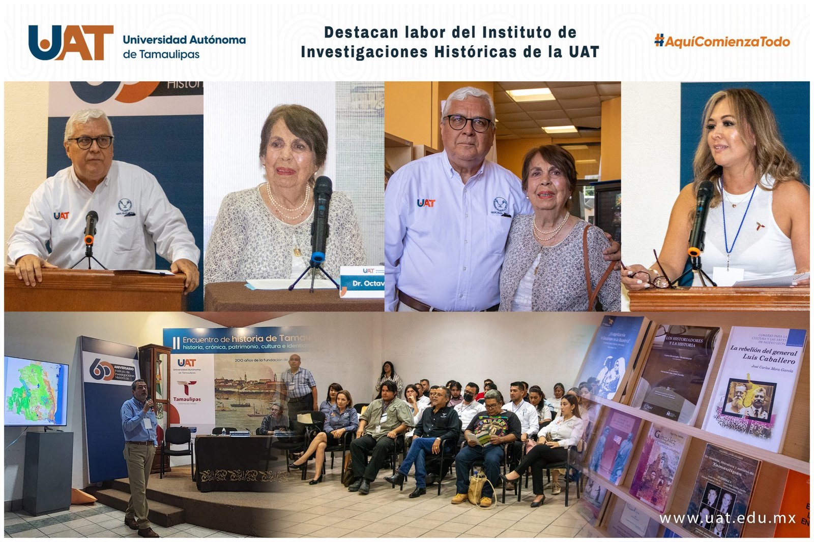 El Dr. Octavio Herrera subrayó que el IIH es el garante de la memoria histórica colectiva de Tamaulipas y un recinto universitario con múltiples funciones permanentes de labores dedicadas a la investigación y al fomento del conocimiento. “El Instituto ha construido una vigorosa plataforma historiográfica editorial y un importante acervo documental y hemerográfico, conserva una rica colección de libros antiguos y posee una extensa biblioteca especializada en temas de la historia regional y la historia de México, todo al servicio de estudiantes, investigadores y público en general”, puntualizó. Por su parte, la C. P. Brenda Denisse de la Cruz López, directora del Instituto Tamaulipeco para la Cultura y las Artes (ITCA), reconoció la labor de la Universidad en la importante tarea de generar y divulgar el conocimiento de la historia de Tamaulipas.