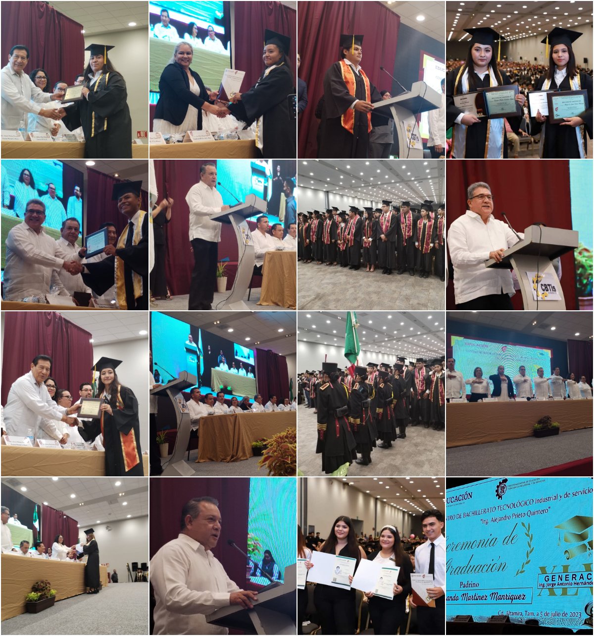 EL DIRECTOR DEL CBTIS 1O5 LIC.GUILLERMO MUÑOZ MARTÍNEZ, MANIFESTO QUE FUE MUY DIFICIL ESTE CICLO, PORQUE ES UNA GENERACIÓN DONDE NOS AFECTO LA PANDEMIA Y QUE TUVIMOS QUE HACER CLASES VIRTUALES ,PERO SE LOGRO EL OBJETIVO Y AQUI ESTAN LOS RESULTADOS, AGRADESCO A TODOS LOS PADRES DE FAMILIA, QUE SIN ELLOS NO LO HUBIERAN LOGRADO, Y LES PIDO GRADUADOS QUE LE DEN UN APLAUDO A SUS PADRES QUE SIEMPRE ESTUVIERON PRESENTES, AGRADESCO AL PADRINO DE ESTA GENERACION AL DR.ARMANDO MARTINEZ MANRRIQUEZ , A ESTE EVENTO PROTOCOLARIO ASISTIÓ CON PRESENTACION EL TITULAR DE LA DGETI EN TAMAULIPAS EL ING.OLEGARIO MUÑIZ CURA, EL PADRINO DE LA GENERACION , DR ARMANDO MARTÍNEZ MANRIQUEZ PRESIDENTE DE ALTAMIRA, ASI COMO LA MAESTRA MARIA DEL CARMEN GUERRERO HERNANDEZ,TITULAR DE LA SECRETARIA DE EDUCACION EN ALTAMIRA, PRESENTES LOS DIRECTORES DE LA ZONA SUR, ING BLADIMIR LOPEZ BELTRÁN DIRECTOR DEL CETIS 109, EL ING.EMMANUEL ÁBREGO ALARCÓN DIRECTOR DEL CBTIS 103 DE CIUDAD MADERO,LIC.JUANA MARÍA MERCADO URBINA DIRECTORA DEL CBTIS 164, ESTEBAN ZAMORANO GUTIÉRREZ DIRECTOR DEL CETIS 22, SE CONTO CON LA PRESENCIA DEL ING GUSTAVO MONTOYA MEDINA DIRECTOR DEL CBTIS 209 DE GONZALEZ TAMAULIPAS,,DESTACADOS PRIMEROS LUGARES DE LAS DIFERENTES CARRERAS ,EL DIRECTOR DEL PLANTEL LIC.GUILLERMO MUÑOZ MARTINEZ AGRADECIÓ A TODOS LOS PRESENTES POR TODO SU APOYO Y A TODO SU EQUIPO DE TRABAJO.