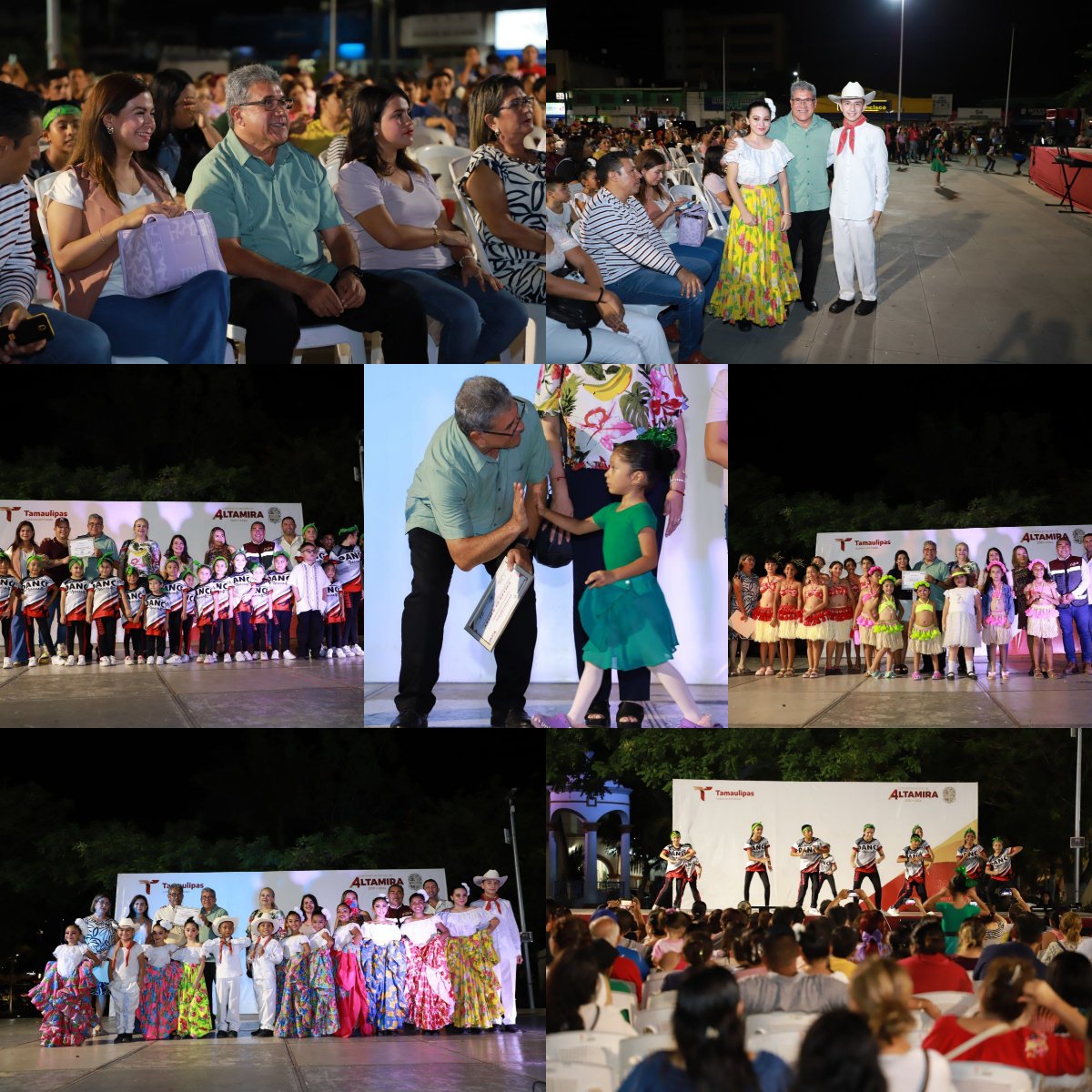 Una extraordinaria velada tuvo lugar en la Plaza Principal de Altamira con motivo del cierre de actividades de los diversos talleres que se ofertan en la Casa de la Cultura «José de Escandón», evento que contó con la asistencia del presidente municipal, Dr. Armando Martínez Manríquez.