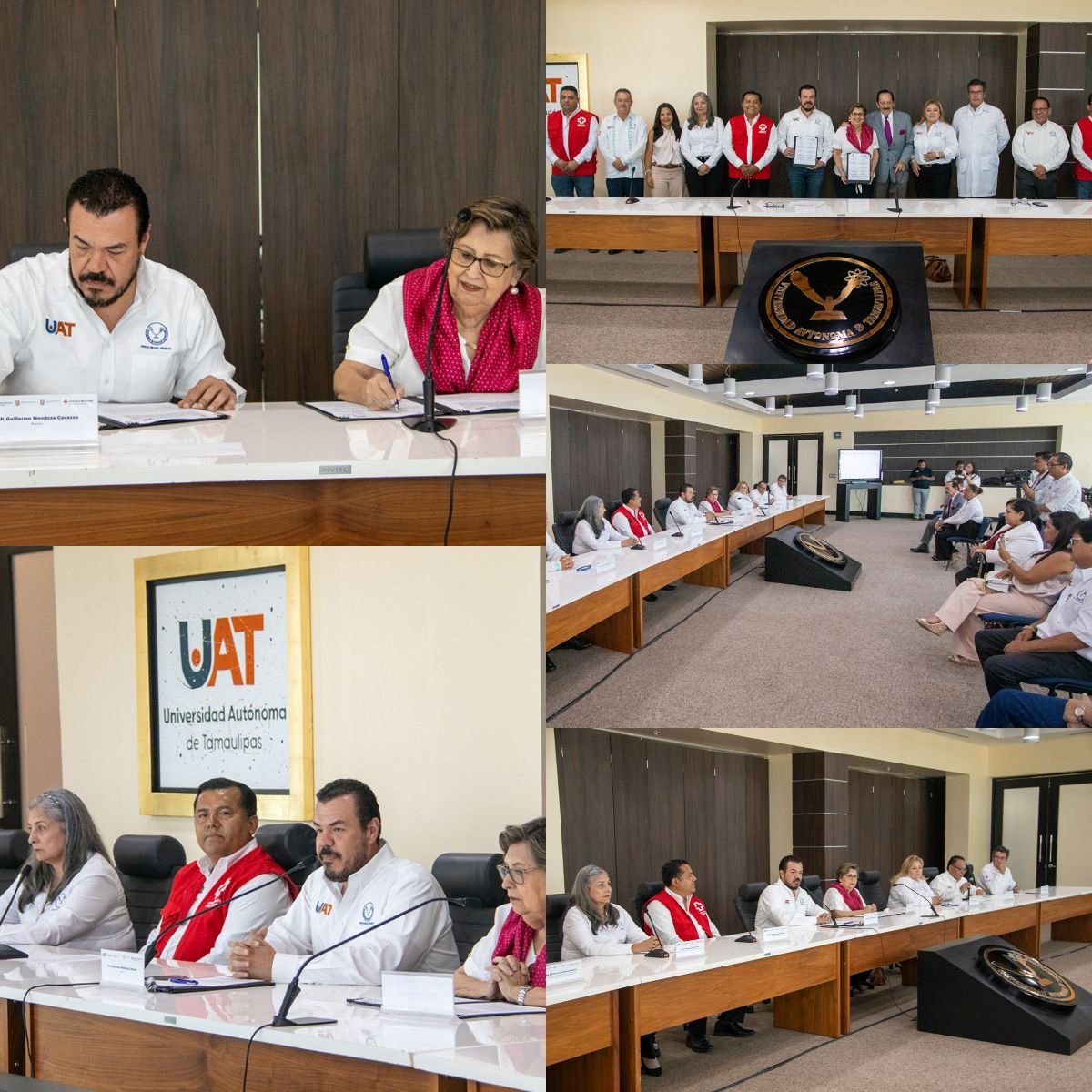 En una ceremonia celebrada en la sala ejecutiva del Centro de Gestión del Conocimiento del Campus Victoria, el convenio fue firmado por el C. P. Guillermo Mendoza Cavazos, rector de la UAT, y la Sra. Graciela Guerra de Araujo, delegada estatal de la Cruz Roja en Tamaulipas.