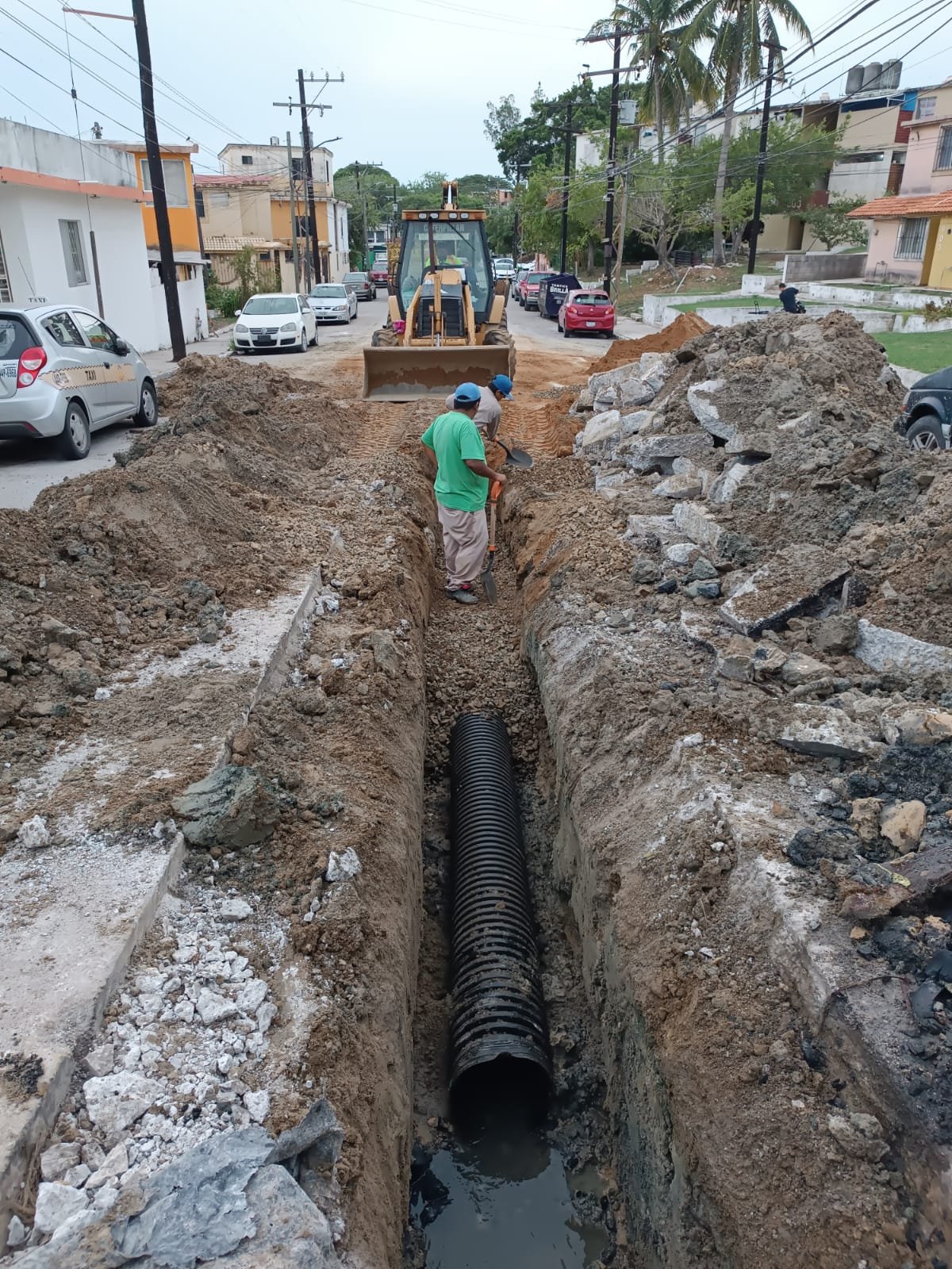 Personal de COMAPA Sur viene trabajando de manera intensa en la reparación de la línea general de drenaje en la colonia Luna Luna de Ciudad Madero, beneficiando a las familias que habitan en este amplio sector.