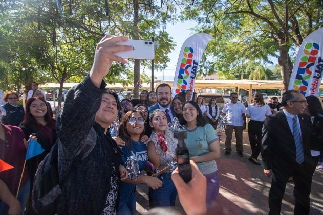 En el marco de la ceremonia conmemorativa efectuada en el auditorio de esta Unidad Académica, el rector Guillermo Mendoza hizo entrega de reconocimientos a estudiantes que durante el ciclo escolar se han destacado en la academia, la ciencia, el deporte y las artes, así como en las actividades del nuevo programa Vida UAT.