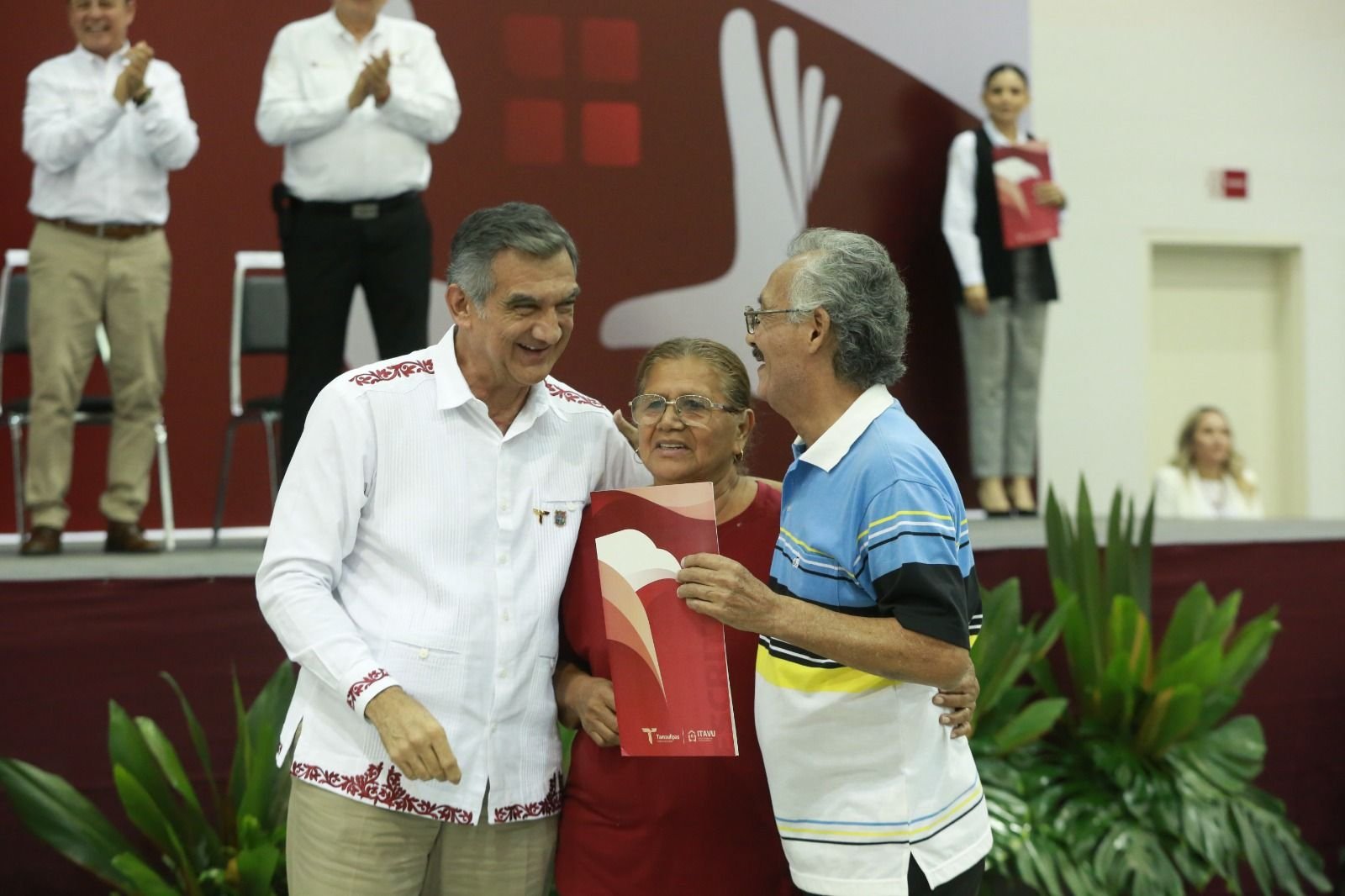 “Gracias a todos ustedes amigas y amigos beneficiarios por confiar en el Gobierno del Estado de Tamaulipas y en sus programas sociales. Que esta escritura sea el soporte que ustedes puedan usar para ejercer a plenitud el derecho de su propiedad y así multiplicar las posibilidades de crecimiento de su patrimonio”, indicó.