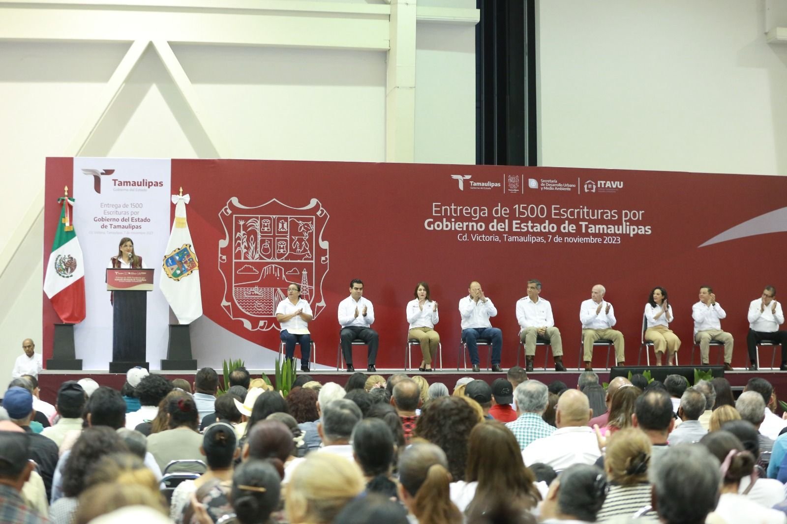 “Nada es más tranquilizante para un jefe o una jefa de familia que poder asegurarle a sus hijos que tendrán un lugar seguro para vivir y que cuentan con un documento 100 % legal que lo avala y lo protege de cualquier posible riesgo, por ello hoy se entregarán a cientos de familias tamaulipecas sus escrituras”, manifestó.