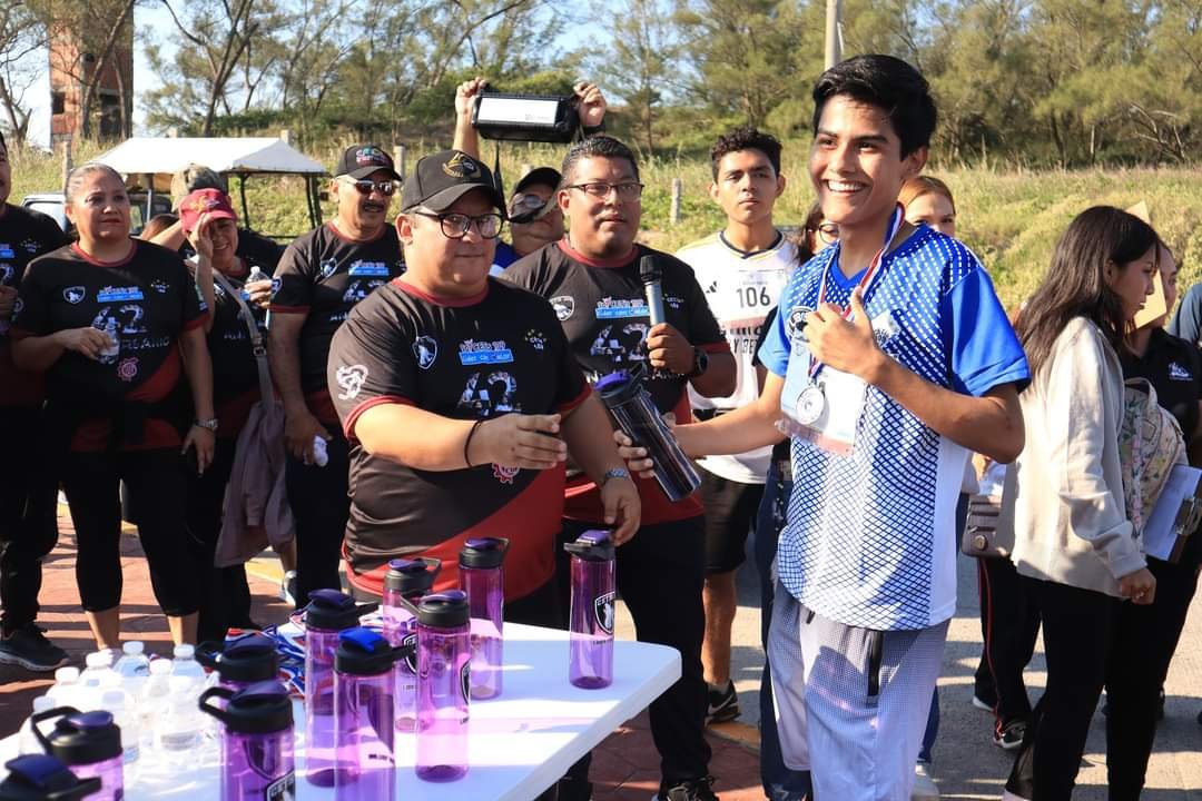 Al finalizar, se realizó la entrega de medalla de primero, segundo lugar y tercer lugar para los alumnos de primero, tercero y quinto semestre, así como para el personal de la escuela que cruzó la línea de meta en estas posiciones en la etapa de 3.0 km.
