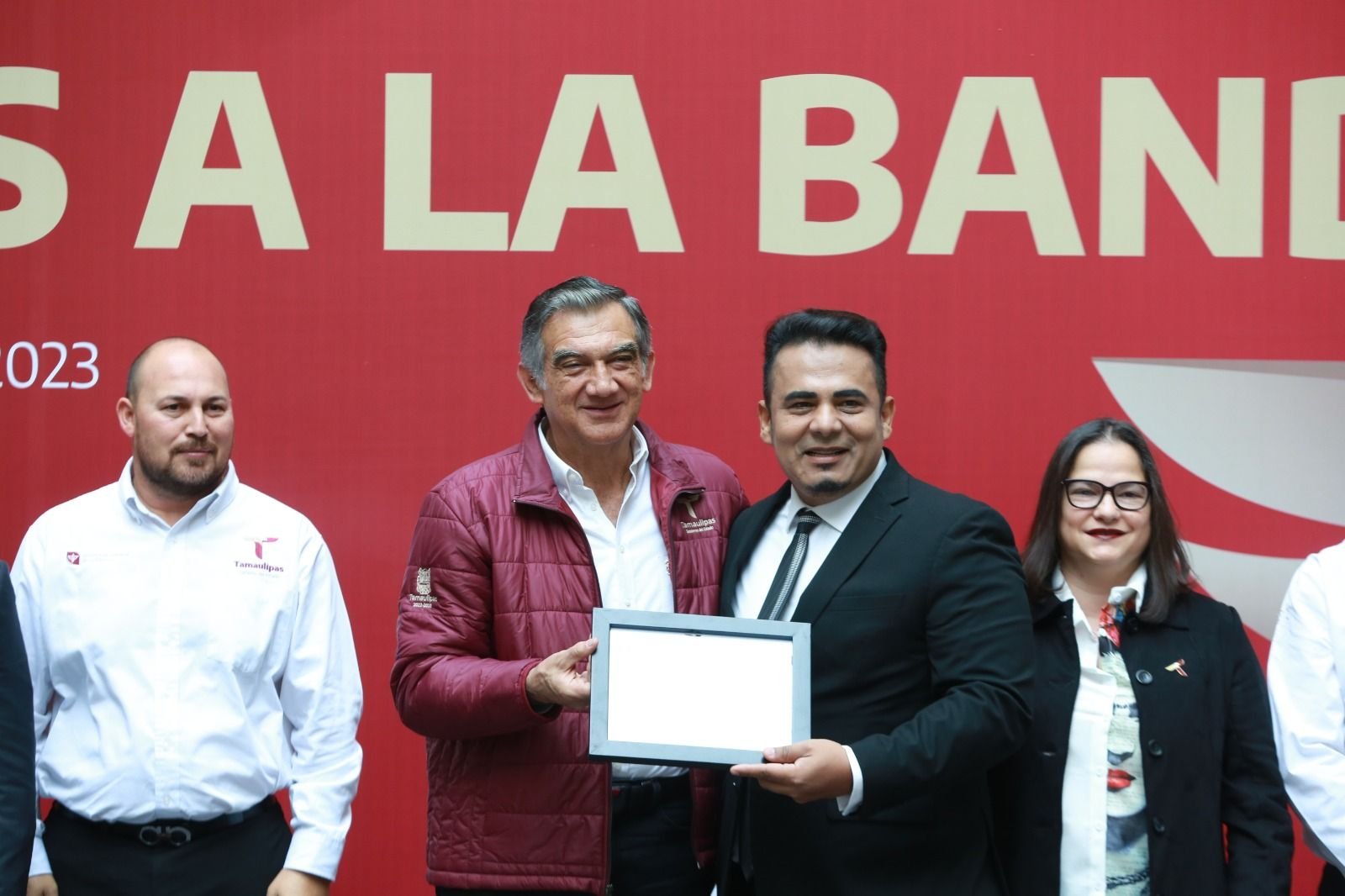 Durante la ceremonia, el gobernador hizo entrega de reconocimientos a los alumnos de la secundaria No. 1 de Ciudad Mante, de la Universidad Tecnológica de Matamoros y de la Universidad Politécnica de Victoria, ganadores de la medalla de oro en la International Science and Invention Fair, realizada en Bali Indonesia, así como a estudiantes del Conalep Matamoros que conquistaron la medalla de plata en la Feria BUCAIMSEF realizada en Turquía y a los alumnos del Tecnológico de Victoria, unidad a distancia Tula, ganadores de la Medalla de Oro en la Feria CIENTEC, realizada en Lima, Perú.