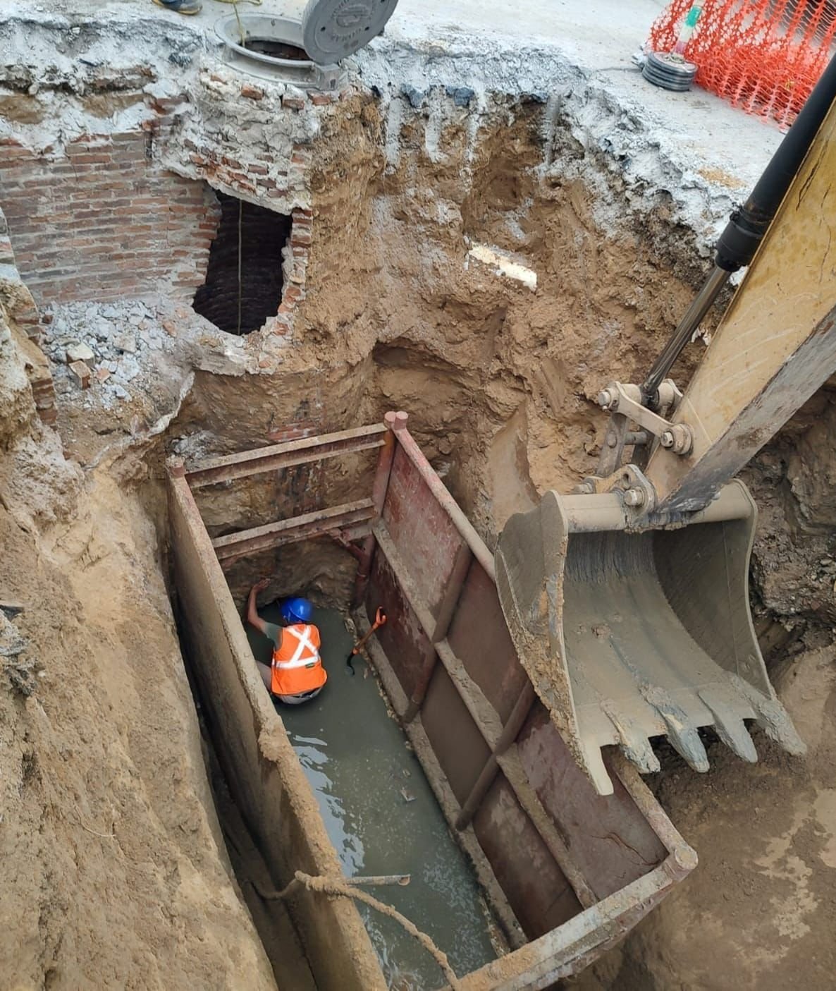 La obra consiste en el reemplazo de una tubería de 18 pulgadas de diámetro, de una longitud de 12 metros lineales, de material de polietileno de alta densidad, lo que garantiza una gran durabilidad.