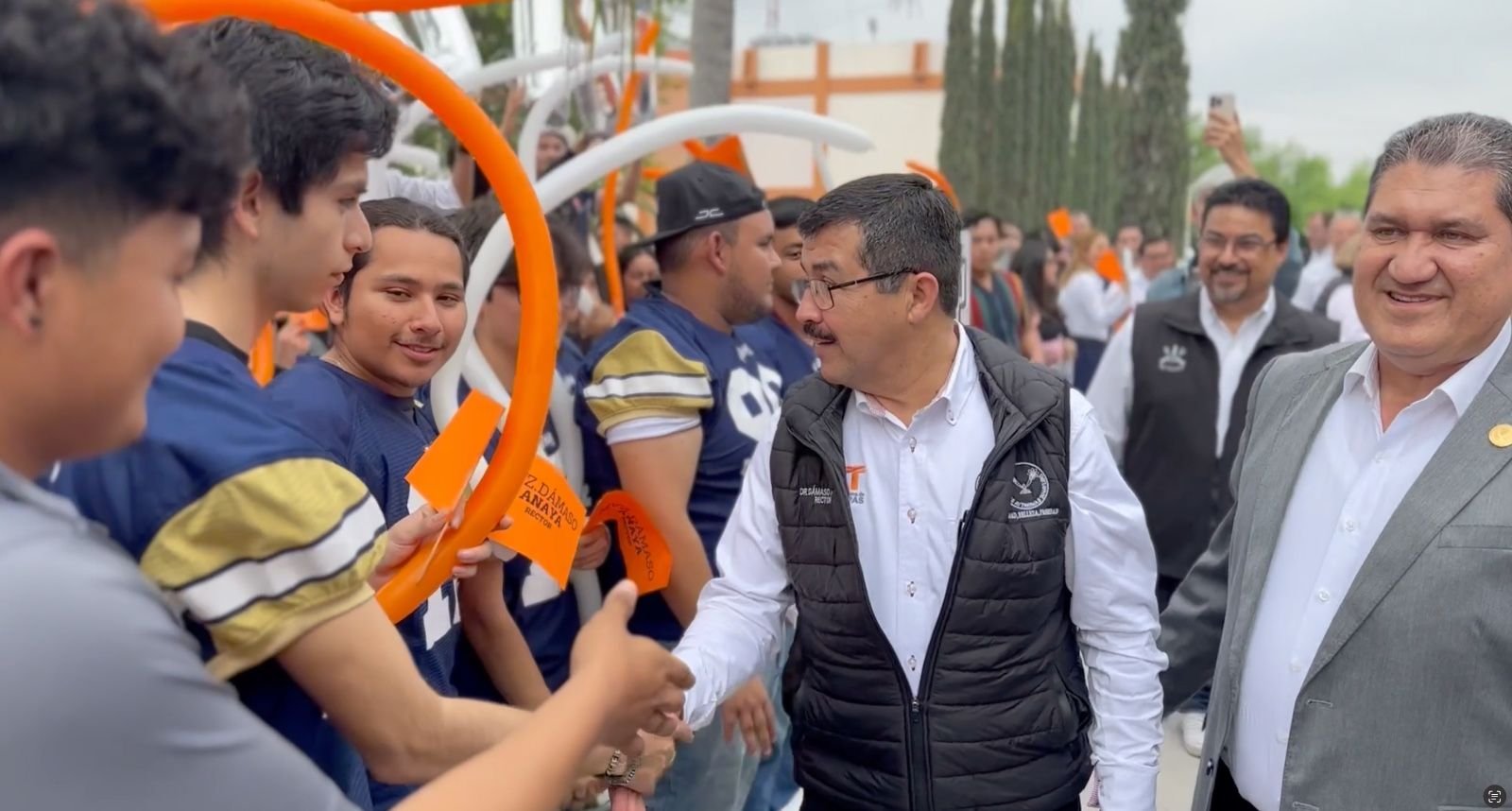 También se reunió con directivos, docentes y estudiantes, e hizo la entrega simbólica de chamarras para los jugadores y cuerpo técnico del equipo de futbol americano.
