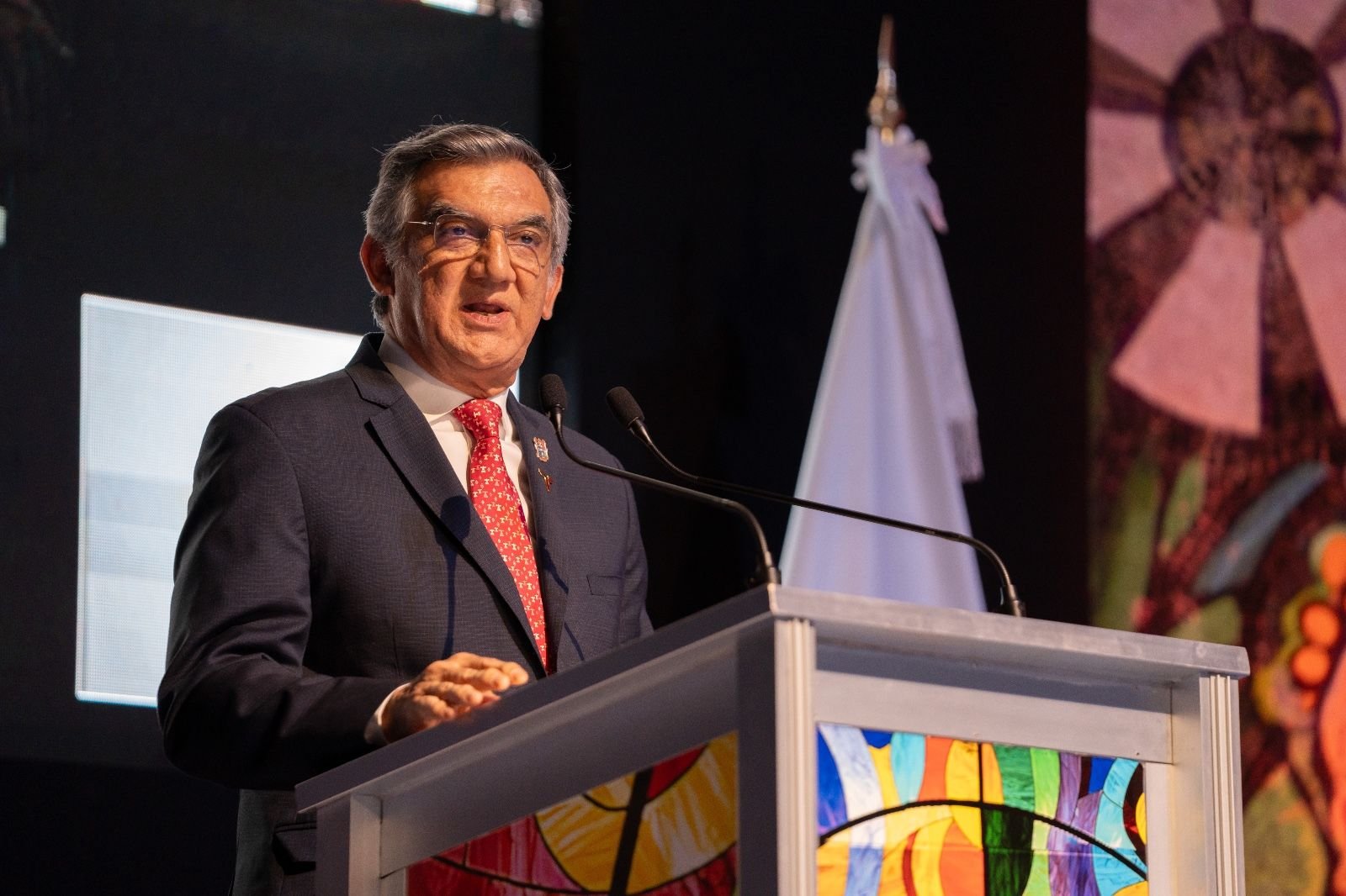 En el marco de la Asamblea Universitaria Solemne realizada en el Gimnasio Multidisciplinario del Campus Victoria, el gobernador felicitó a la comunidad de la máxima casa de estudios por la elección de un rector respaldado por una larga trayectoria universitaria, “un perfil honorable y un consenso que, de forma ejemplarmente democrática, se expresó contundentemente y con una participación muy amplia, lo cual, creo, no tiene precedente”.
