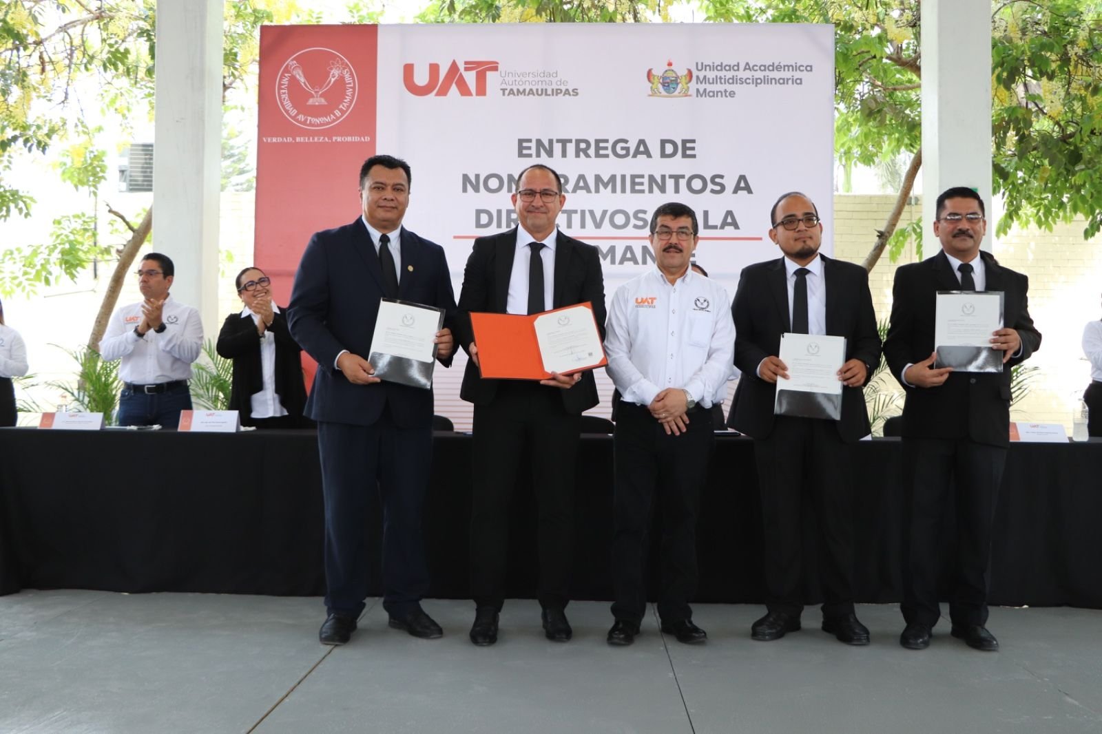 El rector de la Universidad Autónoma de Tamaulipas (UAT), MVZ Dámaso Leonardo Anaya Alvarado, entregó nombramientos a nuevos directivos de la Unidad Académica Multidisciplinaria Mante Centro (UAMMC), quienes, dijo, llevarán a niveles de excelencia el desempeño de este plantel de la máxima casa de estudios del estado.
