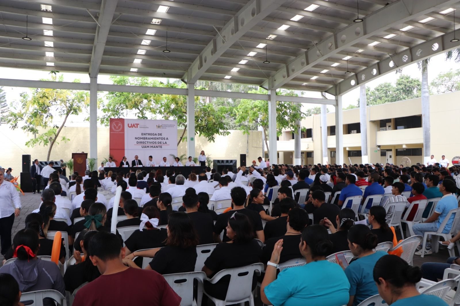 “Hoy, en un acto que simboliza la renovación y el compromiso con el futuro, damos la bienvenida al director interino, Mtro. José Reyna Tinajero, y a los nuevos secretarios”, expresó Dámaso Anaya en su mensaje ante docentes, estudiantes y personal administrativo de la UAM Mante.