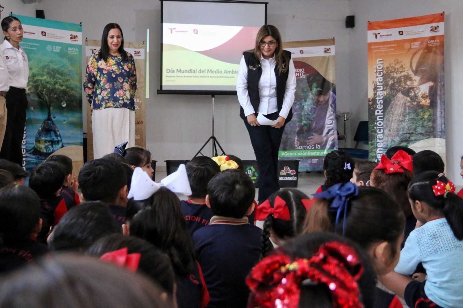 Durante un encuentro con alumnos y maestras del Jardín de Niños “ABC” del municipio de Victoria, como parte del Programa de Educación Ambiental dentro de las actividades de la conmemoración del Día Mundial del Medio Ambiente, la titular de SEDUMA explicó que se debe sembrar la semilla en las niñas y niños tamaulipecos para que sean replicadores de esa información con los adultos y así evitar seguir contaminando el medio ambiente.