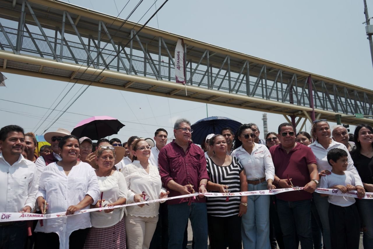 El presidente municipal de Altamira, Dr. Armando Martínez Manríquez, firme en su compromiso con el bienestar y la seguridad vial de los altamirenses, inauguró este día el Puente Peatonal localizado sobre la Avenida de la Industria, a la altura de la colonia Azteca en el Sector Montealto.