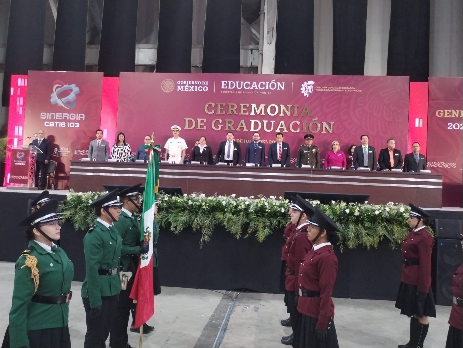 ANTE UNA GRANDE MULTITUD DE PROFESIONISTAS QUE SE GRADÚAN CON UN GRANDE EZFUERZO DE MAESTROS Y PADRES DE FAMILIA, EMOTIVO MENSAJE DEL DIRECTOR ING. EMMANUEL ABREGO ALARCON DIRECTOR DEL CBTIS 103 DE CIUDAD MADERO, FELICITO ALOS GRADUANDOS Y LES DESEO LO MEJOR DE LOS ÉXITOS Y QUE SIGAN ADELANTE Y NO SE DE TENGAN ALCANCEN SUS SUEÑOS.TAMBIEN EL REGIDOR EDGAR AVALOS DOMÍNGUEZ, EN REPRESENTACIÓN DEL PRESIDENTE MUNICIPAL, ADRIAN OSEGUERA KERNION DE IGUAL MANERA EL ENCARGADO DE LA DGTEI EL ING. OLEGARIO MUÑOZ CURA, FELICITO PRIMERAMENTE A LOS PADRES QUE SE EZFORZARON TODOS LOS DÍAS PARA QUE SUS HIJOS CUMPLIERAN SU TERMINACIÓN DE ESTA IMPORTANTE CARRERA, EN EL PRESIDION PRESENTES Y ACOMPAÑANDOLOS DIRECTORES DE LA ZONA SUR, EL DIRECTOR DEL 105 DE ALTAMIRA, LIC. GUILLERMO MUÑOZ MARTÍNEZ, ASI MISMO EL LIC. DEL CETIS 22 ESTEBAN ZAMORANO,ASI MISMO LA LIC. JUANA MARIA MERCADO URBINA, LA PRESENCIA DEL ING. JORGE BLADIMIR LÓPEZ MARTÍNEZ, PRESENTE EL ING. GUSTAVO MONTOYA MEDINA DIRECTOR DEL CBTIS 209 DE GONZÁLEZ, TAMAULIPAS, LA PRESENCIA DE LUPITA MUÑOZ URBINA TITULAR DE LA SEMM, EL ING. JUAN MANUEL FLORES FUENTES DIRECTOR DE CETIS 78 DE ALTAMIRA, TAMAULIPAS ASÍ COMO AUTORIDADES CIVILES Y MILITARES, QUE SE DIERON CITA A ESTA IMPORTANTE CEREMONIA DE GRADUACIÓN DE 1007 ALUMNOS QUE EGRESAN.
