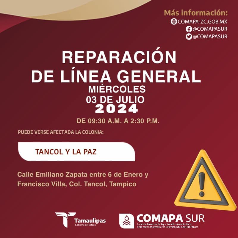 Pueden verse afectadas las colonias: Tancol y La Paz #Tampico#ComapaSur