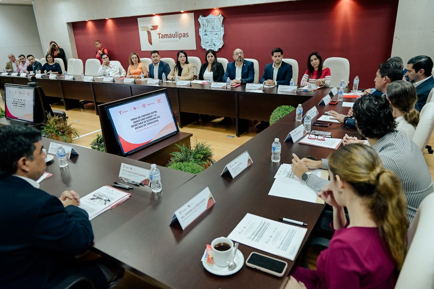 El convenio fue firmado por la secretaria de Economía, Ninfa Cantú Deándar y el director general adjunto de la Red Comercial Banco Santander, Juan Villafuerte Torres en una ceremonia que contó con la presencia del secretario del Trabajo y Previsión Social del estado, Gerardo Illoldi así como líderes de organizaciones empresariales, representantes del gobierno estatal y ejecutivos de la institución bancaria.
