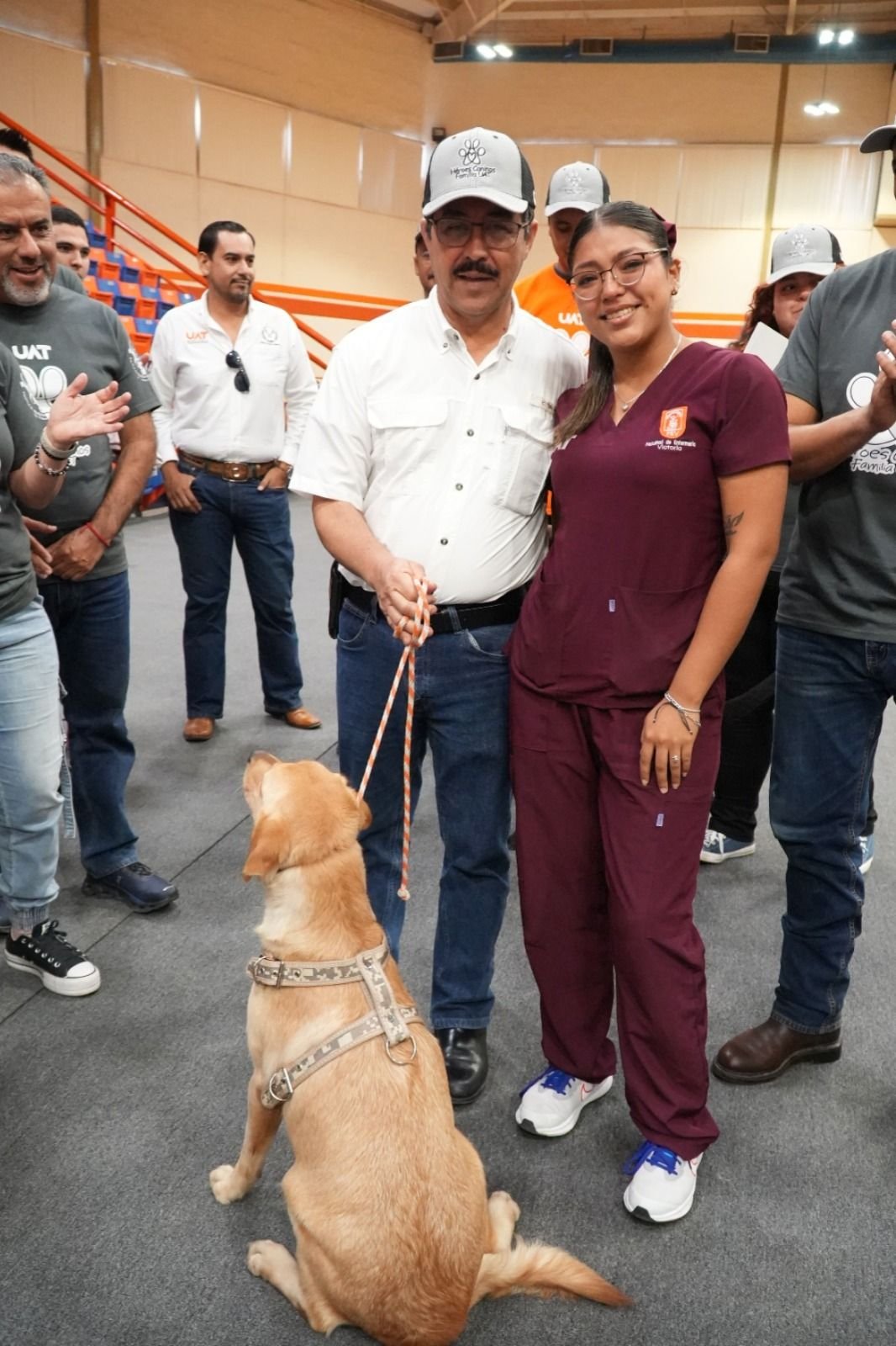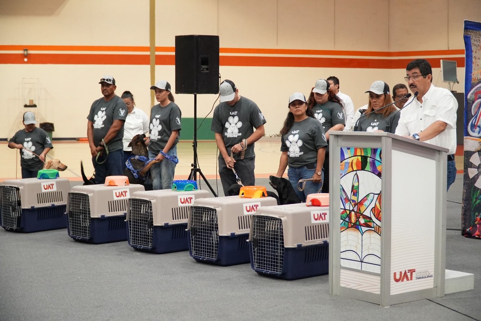En emotiva ceremonia, el rector de la Universidad Autónoma de Tamaulipas (UAT), MVZ Dámaso Anaya Alvarado, presidió la entrega en adopción de diez perros retirados de corporaciones de seguridad y auxilio, a familias tamaulipecas que les brindarán los cuidados y la atención que merecen.