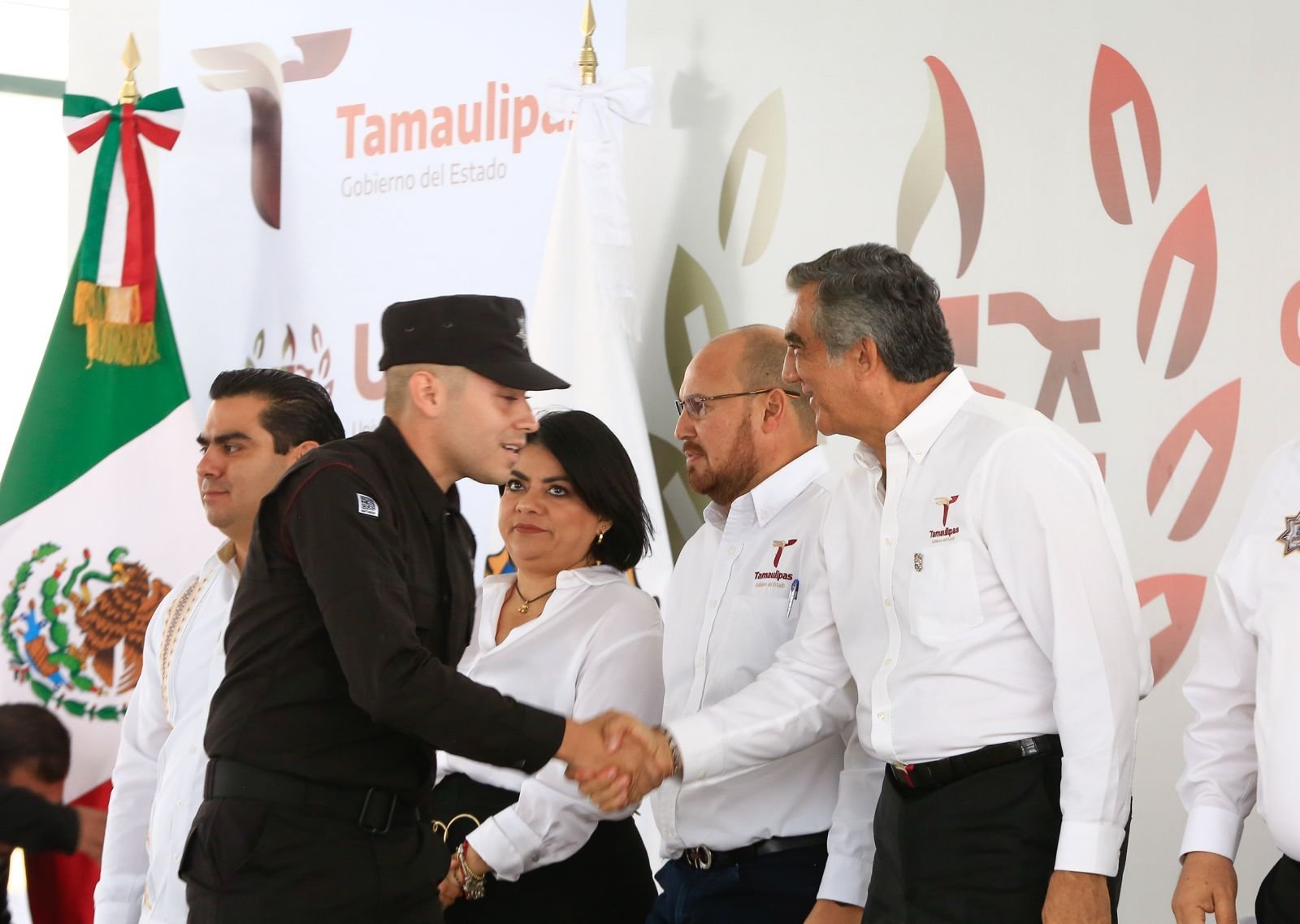 Ciudad Victoria, Tamaulipas.- El gobernador Américo Villarreal Anaya presidió la ceremonia de graduación de 112 cadetes que concluyeron el Curso de Formación Inicial para Policía de Proximidad de la Guardia Estatal y los exhortó a conducirse con apego a los principios de verdad, justicia y honestidad.
