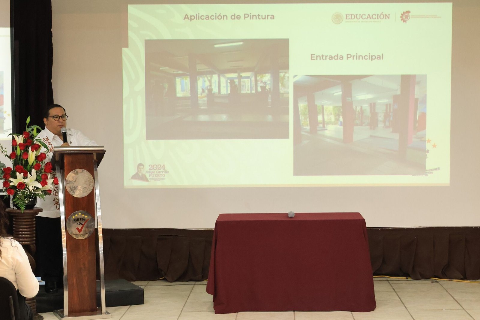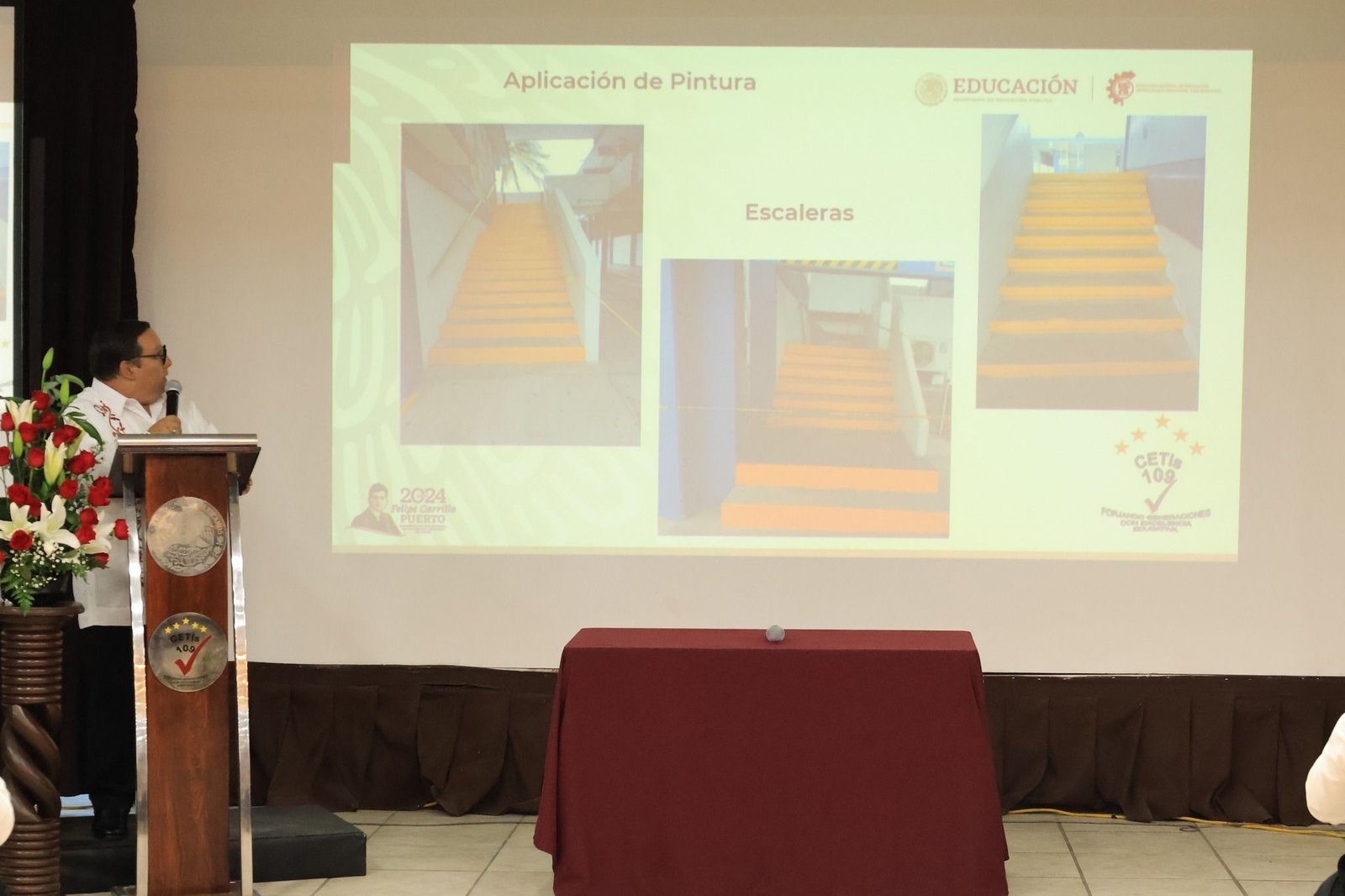 El director del CETis 109, Ing. Jorge Vladimir López Beltrán, presentó el Informe de Actividades y Rendición de Cuentas correspondiente al Ciclo Escolar 2023-2024 en cumplimiento de la fracción XX del artículo 115 de la Ley General de Educación y al Oficio No. 181 de la Subsecretaría de Educación Media Superior.
