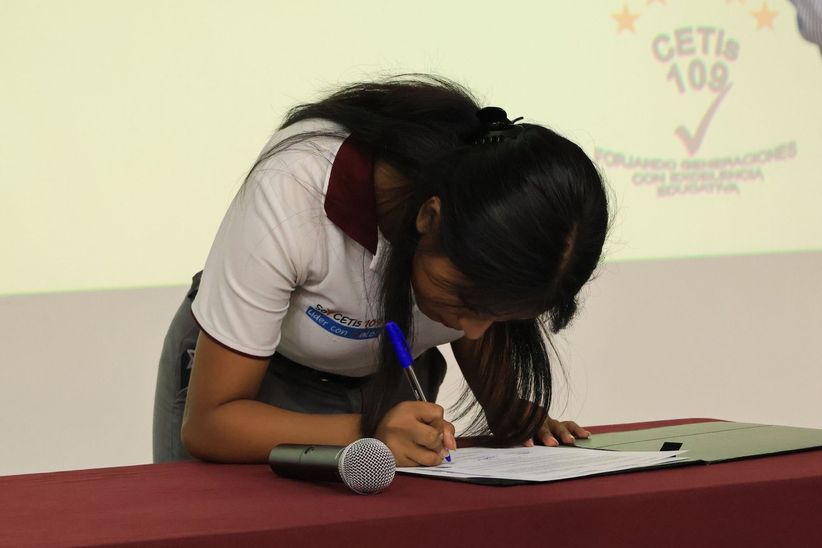 La comunidad educativa presenció este acto que busca mantener la transparencia y fortalecer la gestión educativa en el CETis 109.