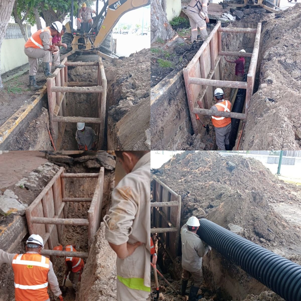 Personal de COMAPA SUR trabaja en la rehabilitación de una línea general de drenaje localizada en importante sector de Ciudad Madero, en donde se repondrán alrededor de 140 metros lineales de tubería.