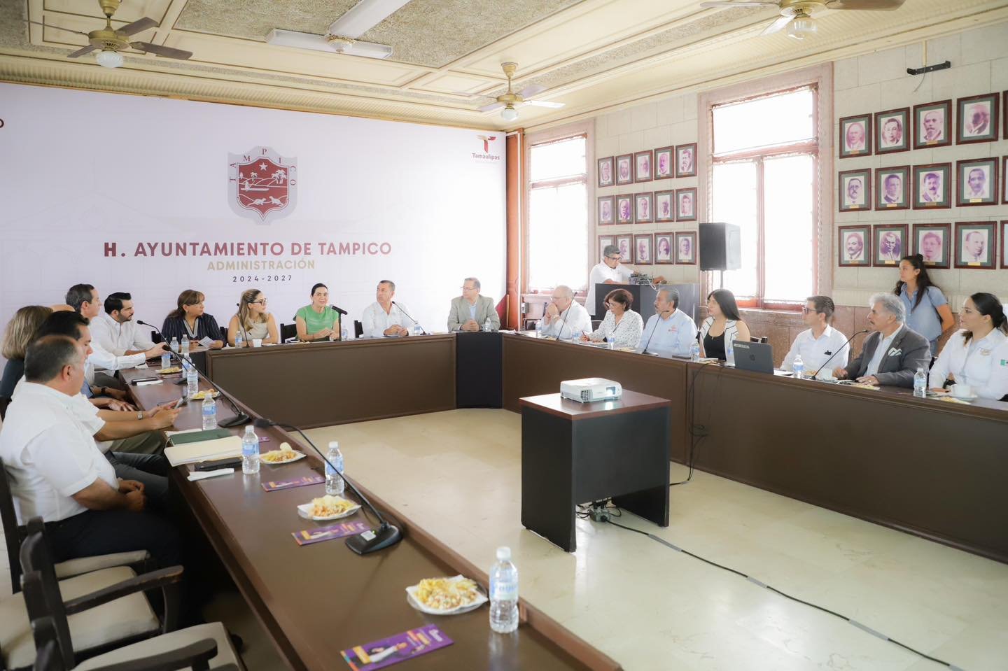 Con el propósito de impulsar mayor desarrollo turístico y comercial en Tampico y zona conurbada, la Presidenta municipal Mónica Zacil Villarreal Anaya, sostuvo una reunión de trabajo con la mesa directiva e integrantes de la Cámara Nacional de Comercio y Servicios Turísticos -CANACO- en la sala de Cabildo del Palacio municipal.