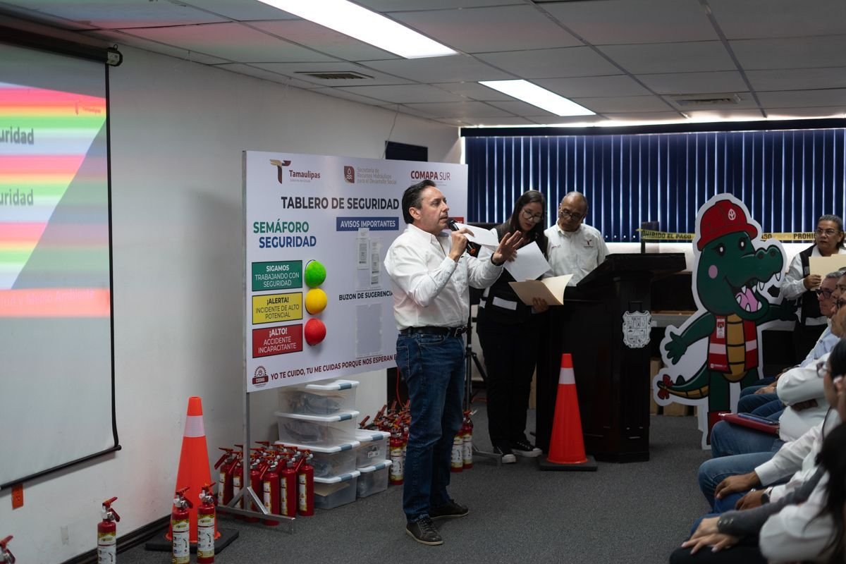 En nombre del gerente general, el Lic. Sergio Villarreal Brictson, señaló qué en la política humanista del Gobernador del Estado, Dr. Américo Villarreal Anaya, instituida por el secretario de Recursos Hidráulicos para el Desarrollo Social, Ing. Raúl Quiroga Álvarez, el capital humano es muy importante y en ese sentido, COMAPA Sur está comprometida con los trabajadores y principalmente con su seguridad.