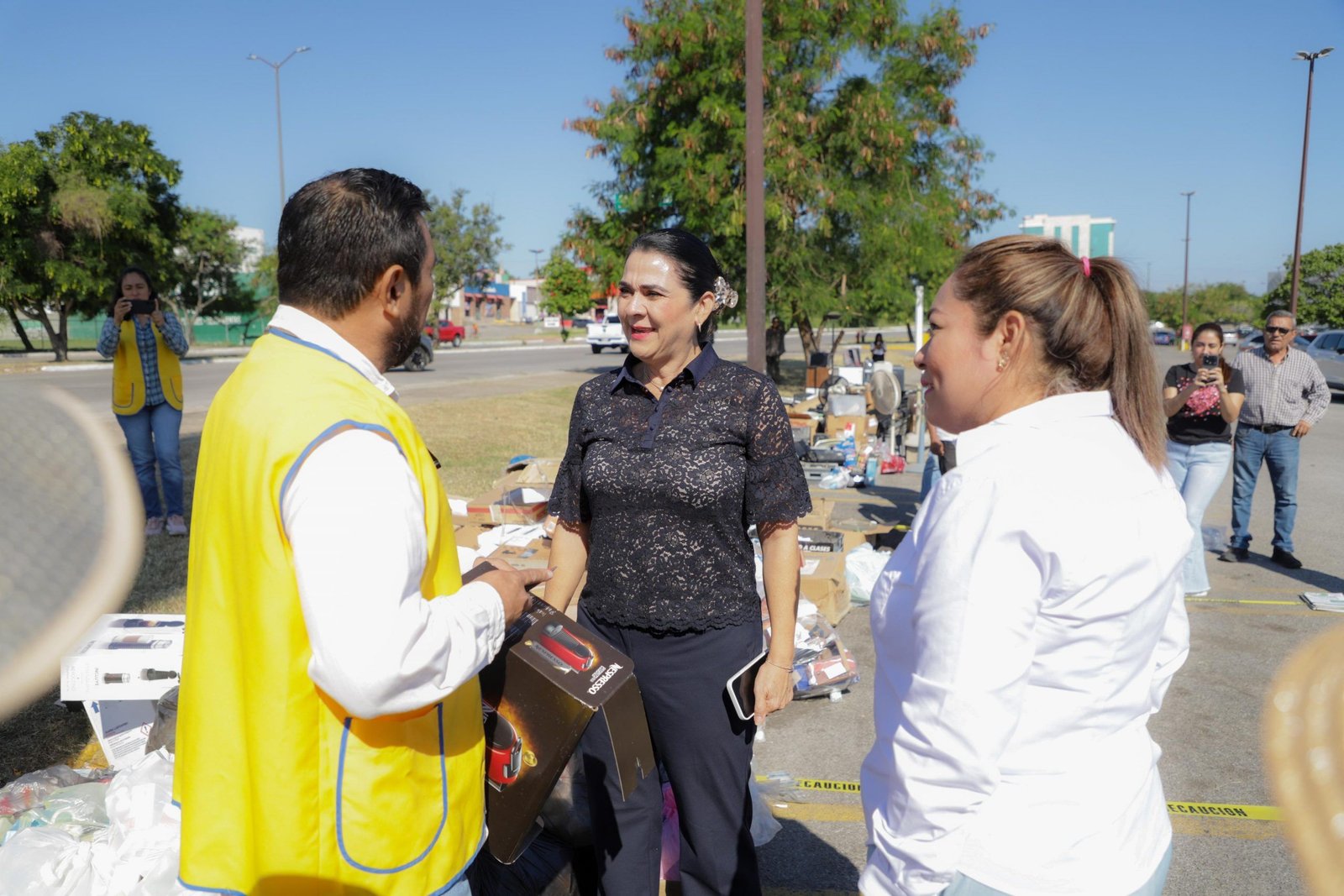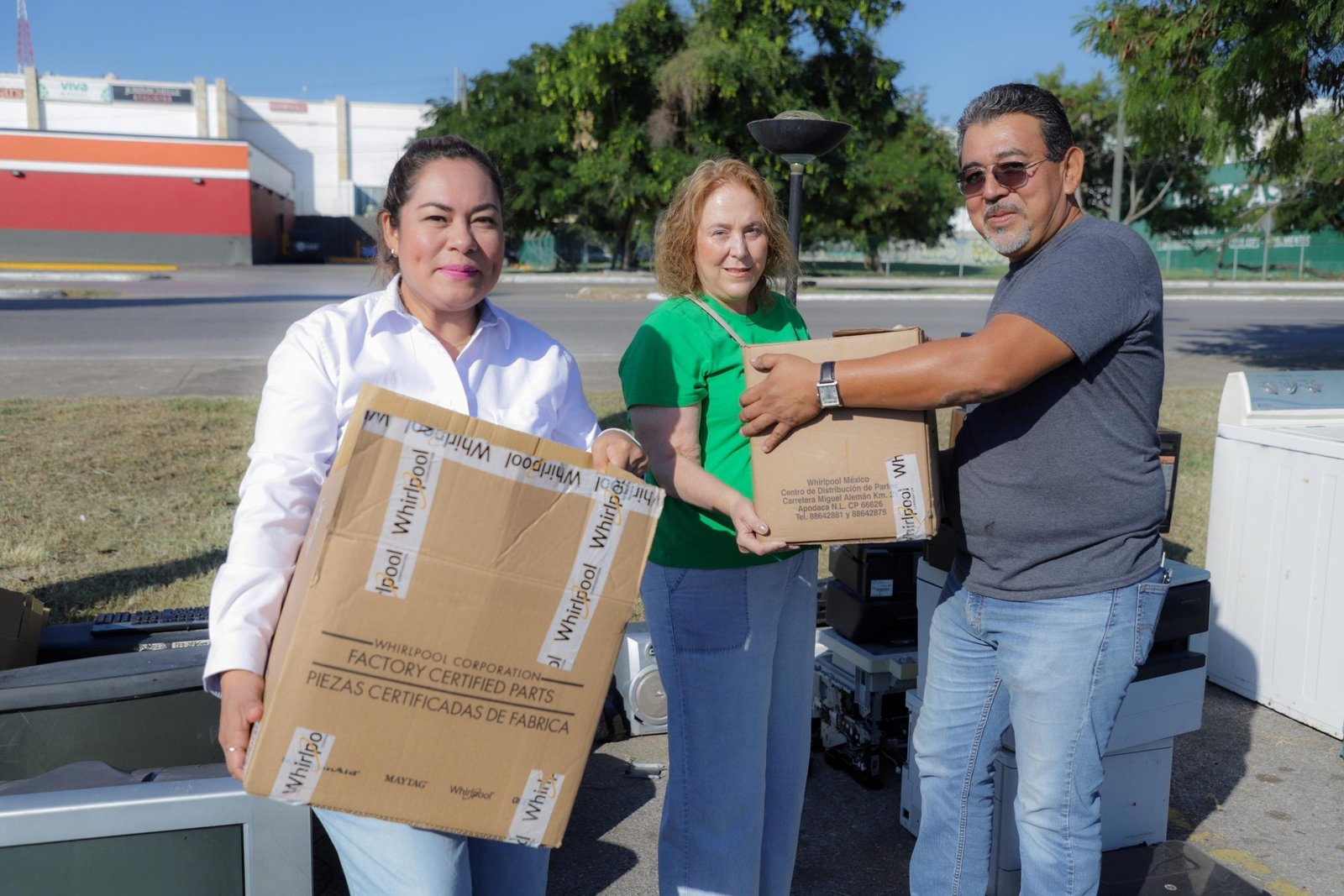 En la campaña “Reciclando Vamos Todos”, efectuada por segunda ocasión en el estacionamiento de un centro comercial localizado en la avenida Ejército Mexicano, la alcaldesa destacó que mediante estas acciones se abren espacios a la población para la recepción de basura especial y electrónica; y se amplían las acciones de protección al entorno natural, reduciendo las emisiones de gases que contribuyen al cambio climático, además de promover una cultura de responsabilidad ambiental en las familias tampiqueñas.