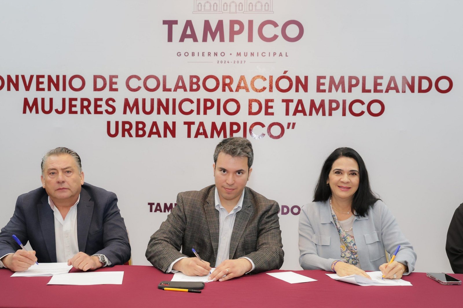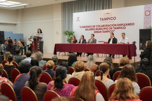 En el evento efectuado en la Casa de la Cultura, la alcaldesa señaló que este convenio es una gran oportunidad para todas las mujeres del municipio, para que accedan a mejores condiciones de trabajo y desarrollo personal, al integrarse a la plantilla laboral de Urban Tampico.
