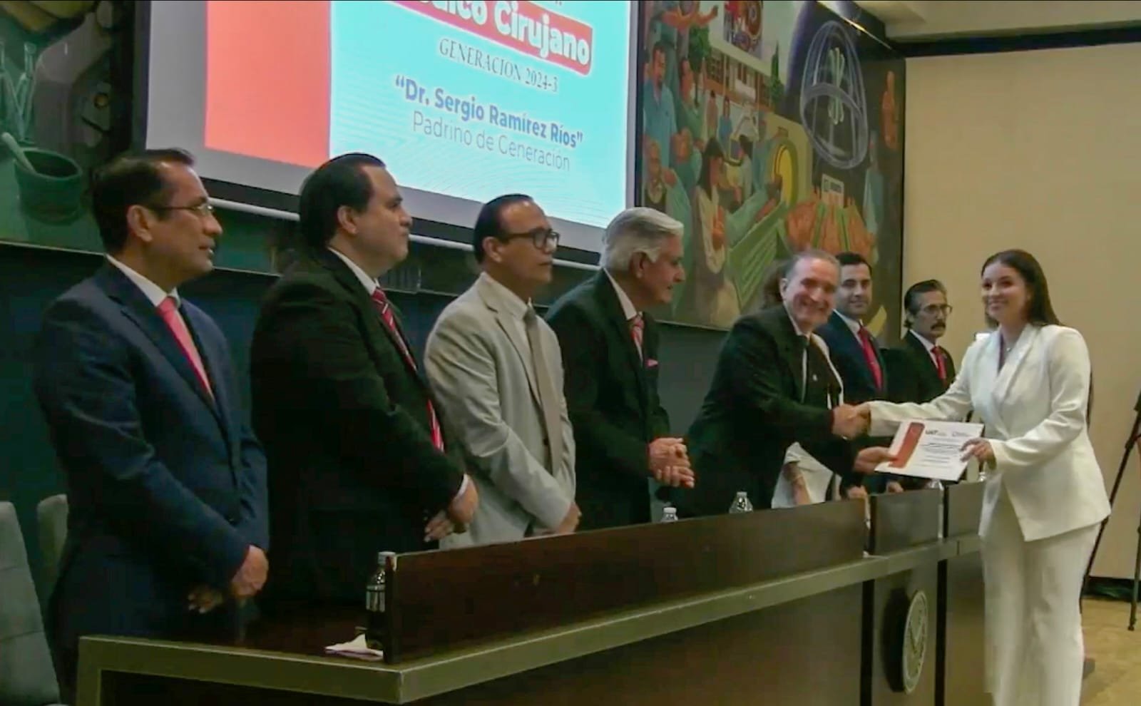 El evento tuvo lugar en el auditorio de la facultad, donde 53 estudiantes recibieron su constancia de egreso, en preparación para obtener próximamente el título de Médico Cirujano.
