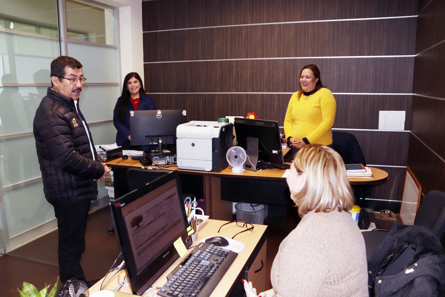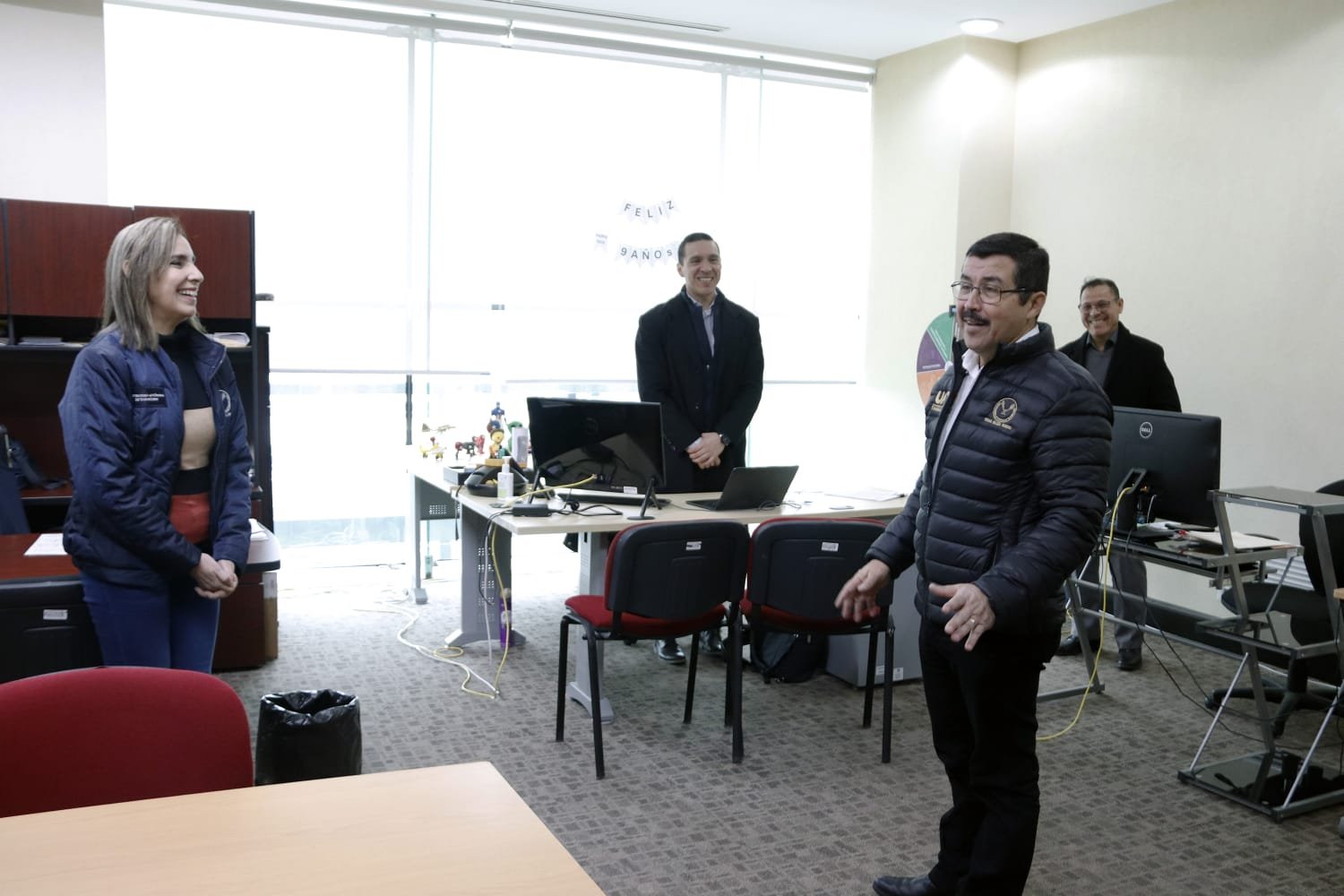 Acompañado por el secretario de Investigación y Posgrado, Fernando Leal Ríos, el rector visitó también la coordinación de Talento Humano, la Dirección de Estudios de Opinión, la Dirección de Posgrado y la Dirección de Investigación, entre otras oficinas ubicadas en distintos espacios del edificio.