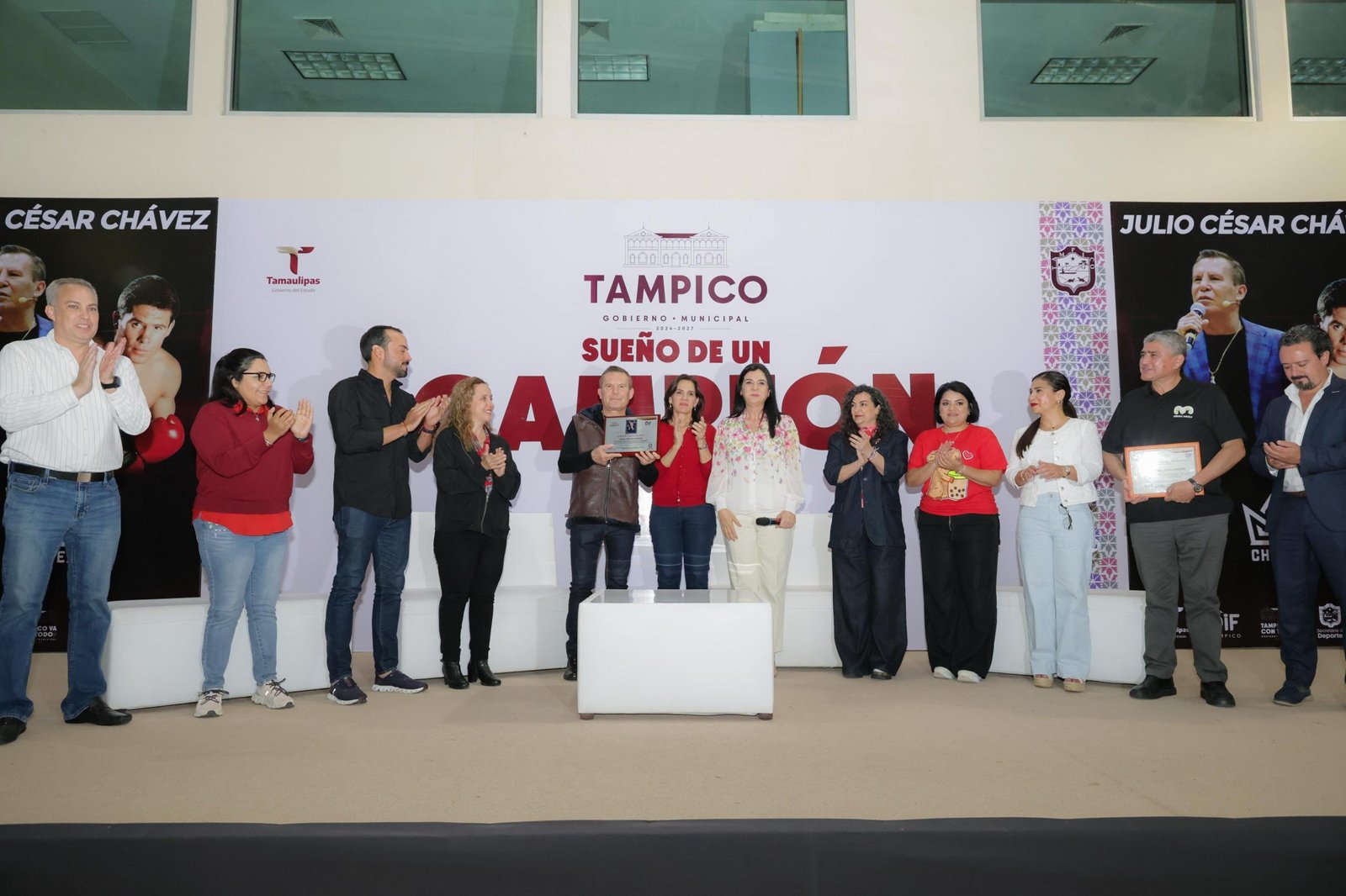 Cumpliendo el compromiso de ofrecer espacios que contribuyan a la integración social y la transmisión de valores, el Ayuntamiento de Tampico presentó la ponencia «El Sueño de un Campeón» con el ex boxeador mexicano Julio César Chávez, en el gimnasio multidisciplinario del polideportivo Tampico.