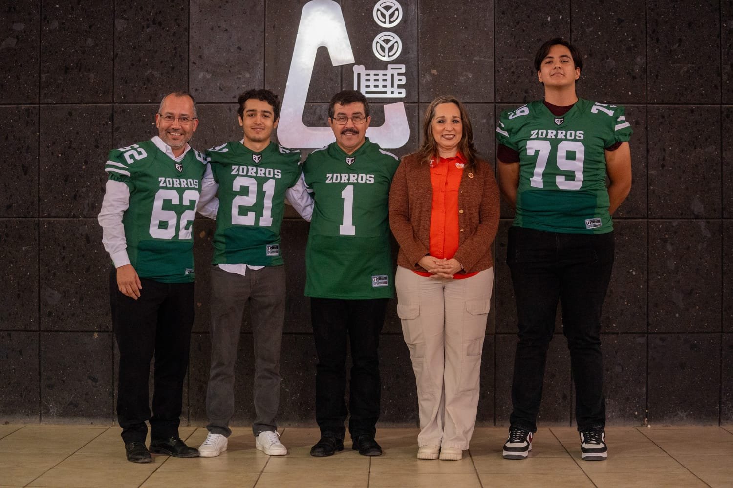 En la ceremonia, el rector hizo entrega simbólica de uniformes y hombreras a los integrantes del equipo de fútbol americano de esta Facultad, quienes, a su vez, entregaron al rector y a su esposa, el jersey representativo del equipo, en reconocimiento por su respaldo al deporte universitario.