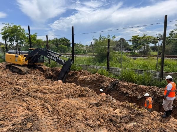 Siguiendo la directriz del Gobierno del Estado en materia de fortalecimiento de la infraestructura pública, COMAPA SUR lleva a cabo trabajos de rehabilitación en un colector de 30 pulgadas, ubicado en terrenos de la Comisión Federal de Electricidad, en la colonia Villahermosa del municipio de Tampico.