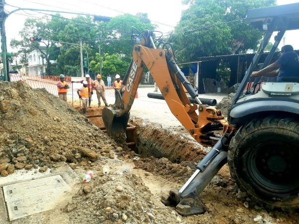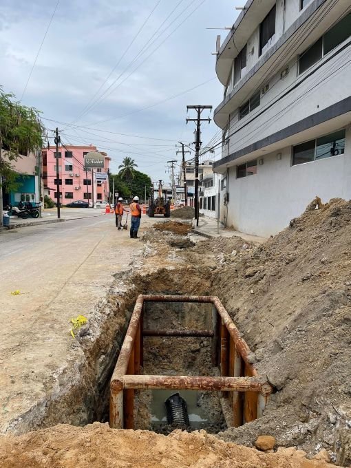 Los trabajos se realizan en la calle Quinta, entre la Sexta Avenida y el Circuito San Felipe, en la colonia Los Pinos, donde se está reponiendo un tramo de aproximadamente 60 metros lineales de tubería de 12 pulgadas de diámetro.