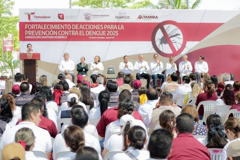 Al participar en el banderazo de inicio a las acciones del Programa de Fortalecimiento de Acciones para la Prevención contra el Dengue 2025, encabezado por el Secretario de Salud en Tamaulipas, Vicente Joel Hernández Navarro, la alcaldesa de Tampico, Mónica Villarreal, destacó la coordinación estratégica entre Gobierno del Estado, municipios y sociedad, para ampliar la capacidad operativa y de resultados, de las acciones contra las enfermedades transmitidas por vector.