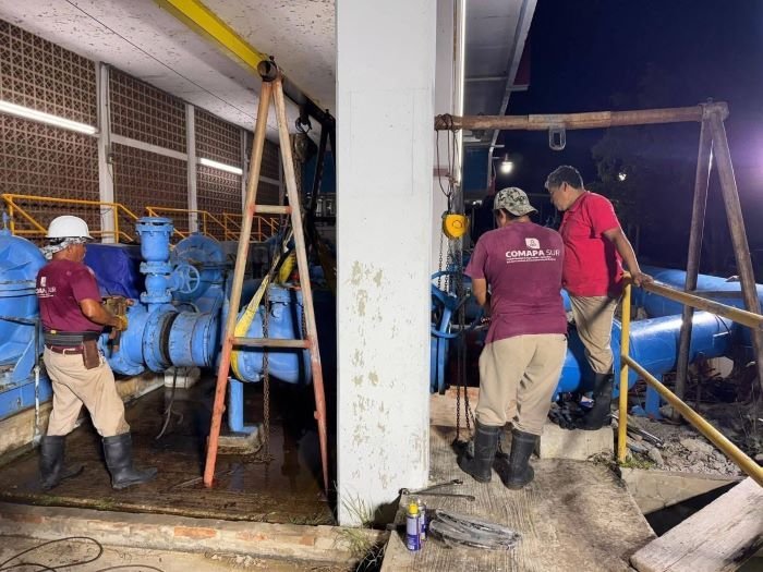 Durante el periodo comprendido de octubre de 2024 a septiembre de 2025, se llevaron a cabo acciones estratégicas como la interconexión de tanques en la planta Laguna de La Puerta, la construcción de 469 metros de línea de agua potable en la avenida Palafox y la rehabilitación de 713 metros de tubería de 36 pulgadas desde la planta Laguna de La Puerta hasta la calle Batallón de San Blas. Asimismo, en la zona de Tancol se repusieron más de 1,100 metros de tuberías, beneficiando a 48,990 habitantes con un suministro más eficiente.