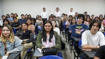 Comparte el rector logros y proyectos con estudiantes de la Facultad de Derecho Victoria