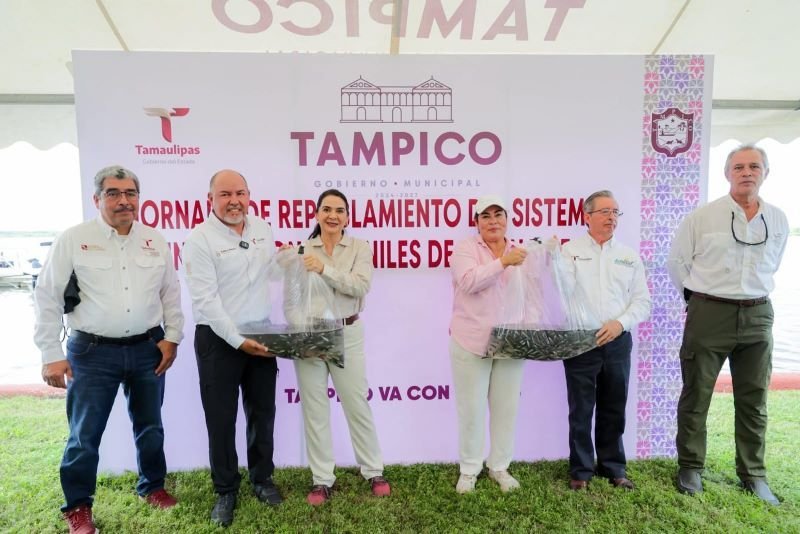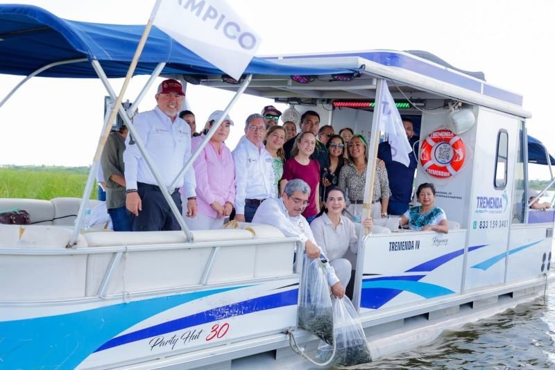 Reafirmando su compromiso con la preservación del ecosistema sur tamaulipeco, la alcaldesa Mónica Villarreal encabezó este día la siembra de siete mil juveniles de Lobina Negra en el Sistema Lagunario de Tampico, acción que contribuirá a fortalecer la población de esta especie acuática y al desarrollo de una pesca responsable.