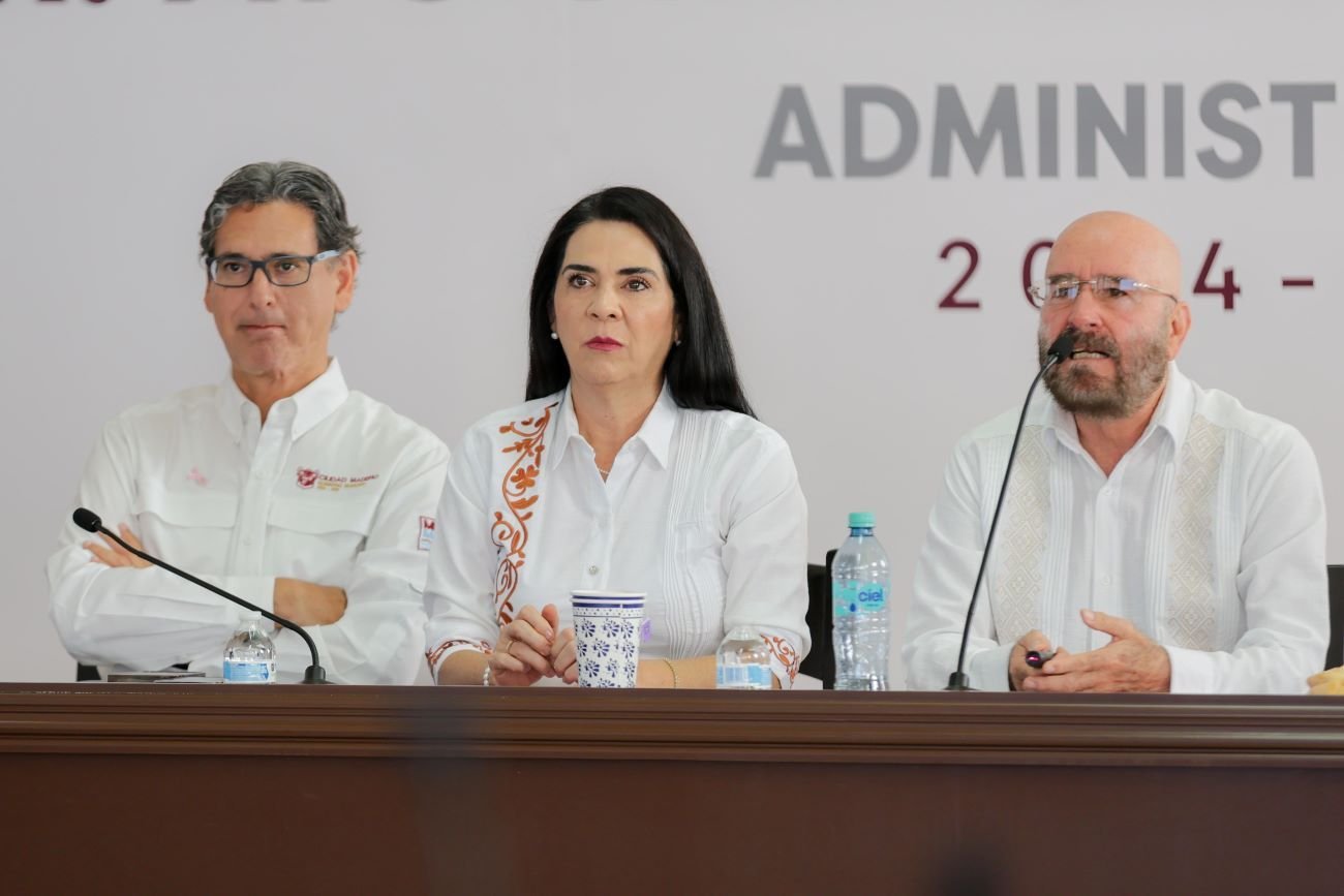 Durante la rueda de prensa convocada en la Sala de Cabildo, la primera autoridad estuvo acompañada del Secretario de Recursos Hidráulicos para el Desarrollo Social, Raúl Quiróga Álvarez y del Coordinador Estatal de Protección Civil, Luis Gerardo González de la Fuente.