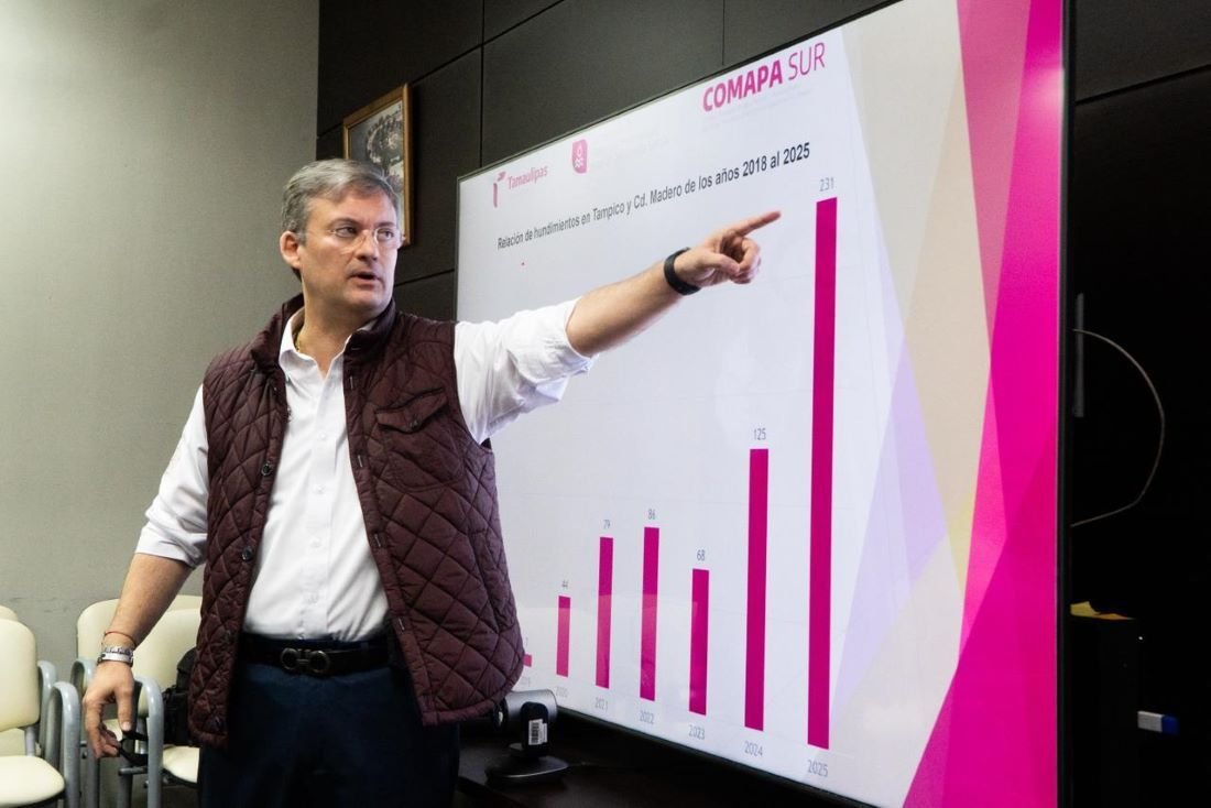 “En Tampico mantenemos una relación de trabajo permanente y coordinada con Comapa Sur y la Secretaría de Recursos Hidráulicos. Sin embargo, no debemos perder de vista que administraciones anteriores dejaron de realizar el mantenimiento necesario y no contaron con un catastro hídrico, el cual hoy estamos conformando. Asimismo, se omitió impulsar un desarrollo a través de un plan de ordenamiento territorial, que en su momento ni siquiera fue publicado en el Periódico Oficial”, apuntó.