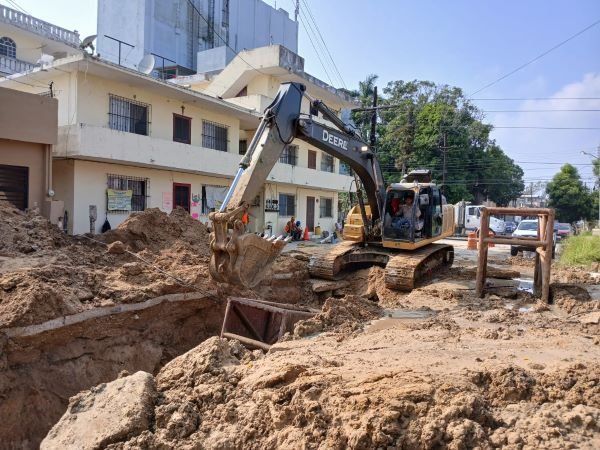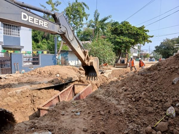 En la colonia Tinaco, una de las zonas más tradicionales y de mayor antigüedad del municipio, se trabaja en la rehabilitación de 90 metros de la línea general de drenaje ubicada en la calle Aduana, entre Primero de Mayo y Díaz Mirón. A la fecha, la obra registra un 80% de avance, y permitirá optimizar el flujo sanitario, reducir riesgos de colapsos y elevar las condiciones de salubridad en un sector cuya infraestructura acumulaba décadas de uso.