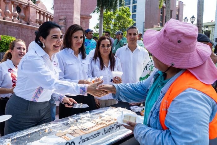 Acompañada de la titular del Sistema DIF Tampico, Luz Adriana Villarreal Anaya, así como de síndicos y regidores, la alcaldesa porteña procedió a la partida del tradicional pastel para compartir con la ciudadanía, quienes se sumaron al festejo de este icónico patrimonio urbano del municipio.