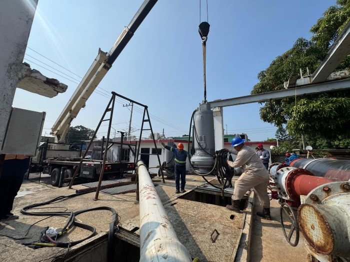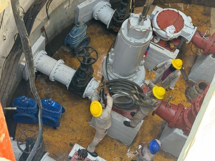 Instalamos una nueva bomba de 280 HP en el cárcamo Primavera. Esta acción fortalece la capacidad de bombeo y garantiza un desalojo más eficiente de las aguas residuales, previniendo acumulaciones y mejorando la operatividad del sistema en beneficio de miles de familias de sectores aledaños.