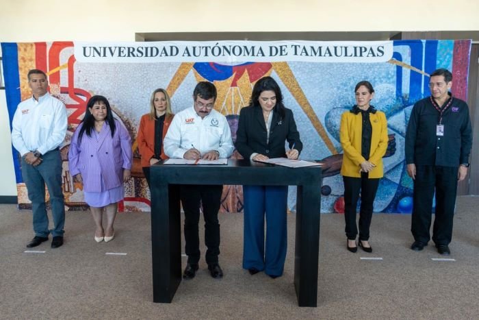 La firma del convenio, efectuada en Ciudad Victoria fue encabezada por el rector de la UAT, Dámaso Anaya Alvarado, y contó con la presencia de la Presidenta del Sistema DIF Tampico, Luz Adriana Villarreal Anaya y del director Humberto Granados Cepeda, así como de la directora de la Facultad de Derecho y Ciencias Sociales, Elda Ruth de los Reyes Villarreal, entre otras autoridades universitarias y municipales vinculadas a los ámbitos académico y social.