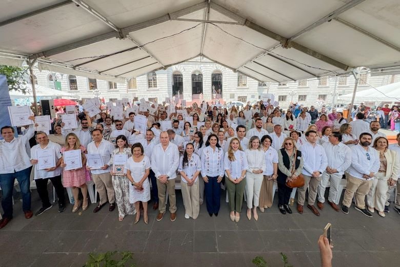 La Presidenta Municipal de Tampico, Mónica Villarreal Anaya, encabezó la ceremonia de entrega de los Distintivos “Hecho en Tampico” a 70 empresarios locales, reafirmando el compromiso de su administración con el fortalecimiento del comercio y la economía regional.