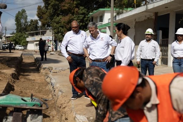Durante la visita, las autoridades constataron el avance de los trabajos que se realizan en la calle México, entre Primera y Segunda Avenida, donde se lleva a cabo la rehabilitación de un colector sanitario de 15 pulgadas con una longitud de 95 metros lineales, obra que representa una inversión de 1 millón 57 mil 196 pesos y que se encuentra prácticamente concluida.