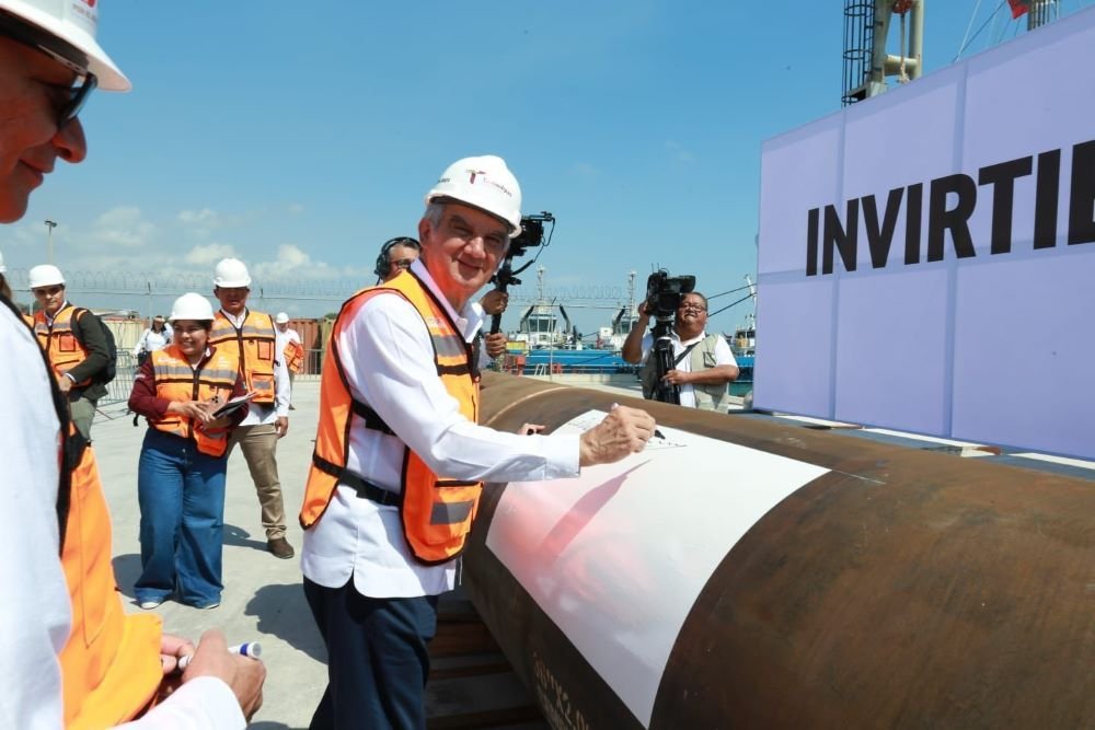 “Vamos a estar viniendo con ustedes a saludarlos, a solicitar su apoyo y a estar siempre con ustedes en el crecimiento del estado de Tamaulipas”, expresó durante la ceremonia realizada en el Puerto de Altamira, que representó un momento histórico para este proyecto, puesto en marcha en alianza entre Pemex y la empresa australiana Woodside Energy, con una inversión estimada en 10 mil millones de dólares.
